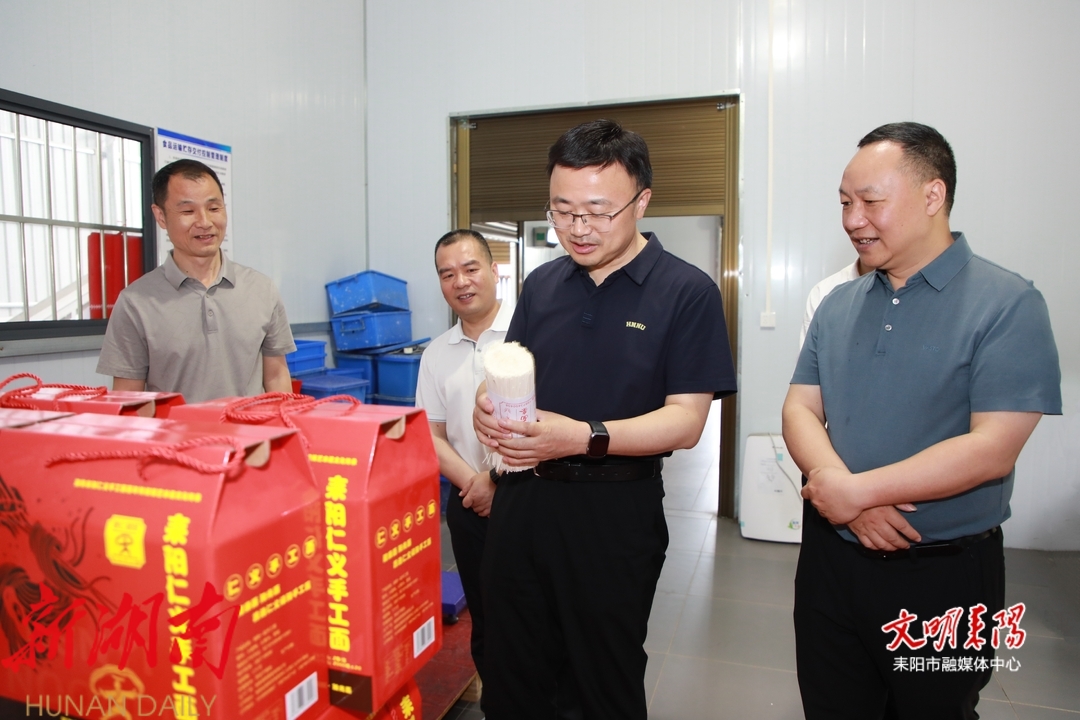 在仁义镇禄阳面条有限公司,张润槐详细了解生产经营、产品销售、制作工艺、品牌培育等情况,要求充分发挥衡阳市非遗技艺优势,在技术研发、宣传推广、品牌打造等方面下更大功夫,丰富产品品类,坚持线上线下“两端发力”,进一步擦亮“仁义手工面”名片,不断延长、优化农产品精深加工产业链,努力做好“一碗面”文章。