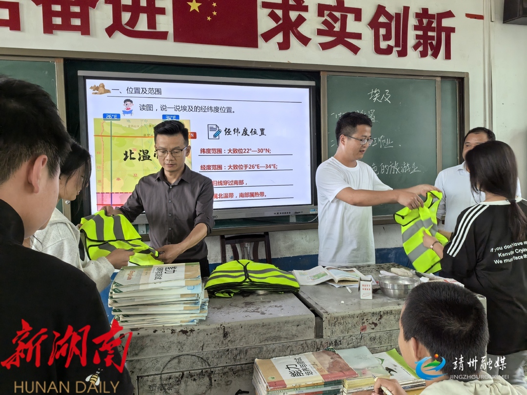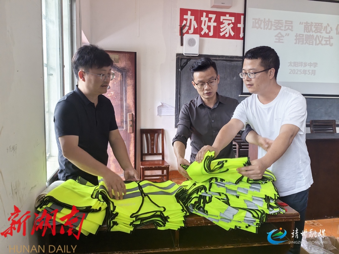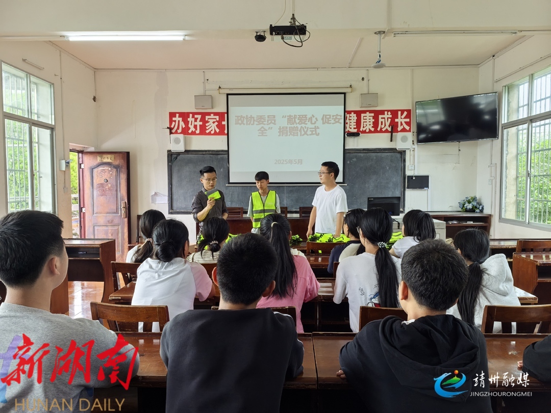 靖州政协联动乡政府献爱心 320件反光背心护航学子平安路