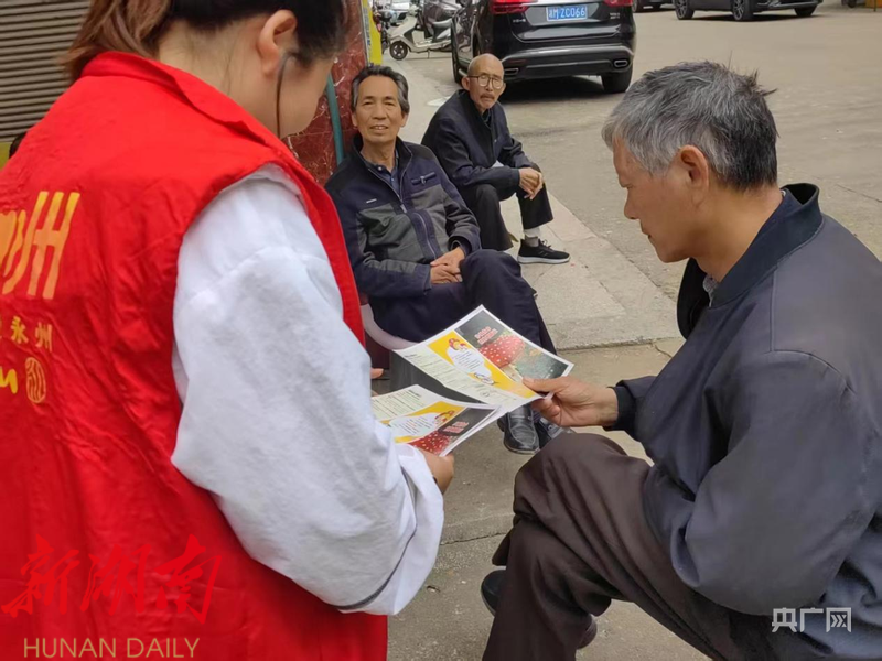工作人员发放宣传资料(唐高翔 摄)