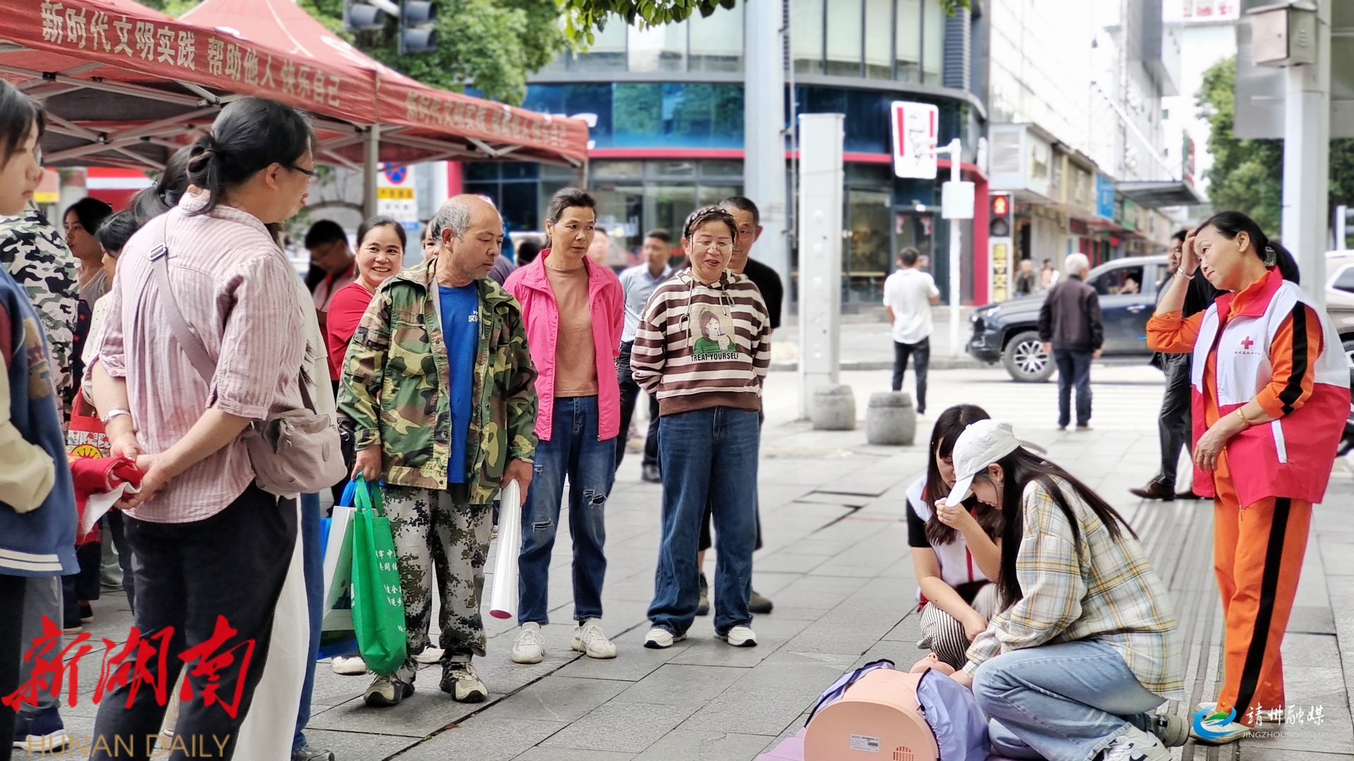 现场还设置互动体验区,演示心肺复苏、止血包扎等急救技能,吸引众多群众驻足观看和参与学习。