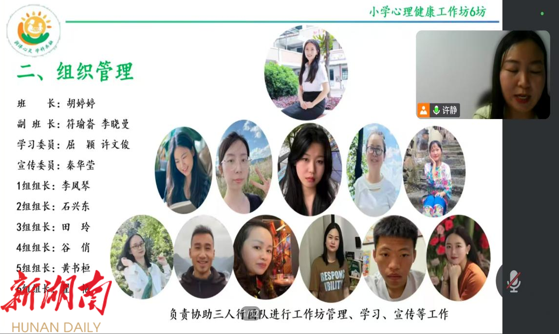 湖南日报·新湖南客户端5月9日讯(通讯员 秦华莹 胡婷婷) 为进一步提升教师心理健康教育能力,促进学生全面发展,5月7日,永定区学科教师"心理健康"专题培训许静工作坊通过云端会议平台举行开班仪式,小学阶段各个学科的90名教师参加开班仪式。