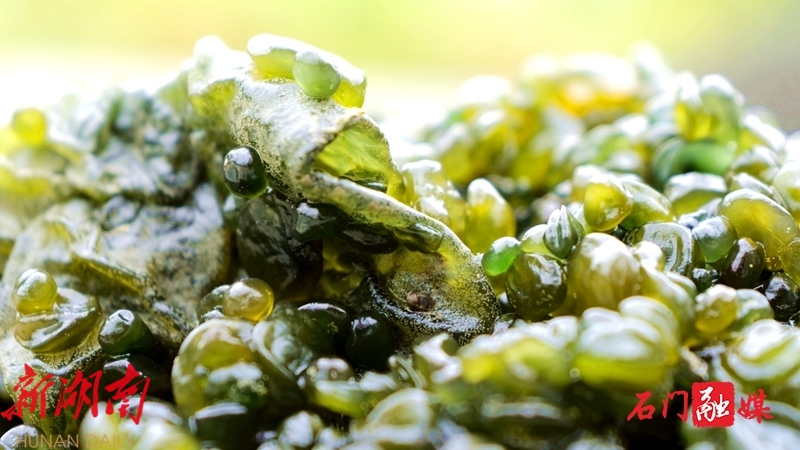 葛仙米,又称“田木耳”“天仙米”“珍珠菜”,其形状像米粒,干燥后颗粒圆形,富含多种氨基酸及多糖等活性物质,被誉为“水中软黄金”。眼下正是葛仙米的成熟期,村民在稻田间忙碌穿梭,将一颗颗抱团生长的葛仙米轻轻聚拢捞起。