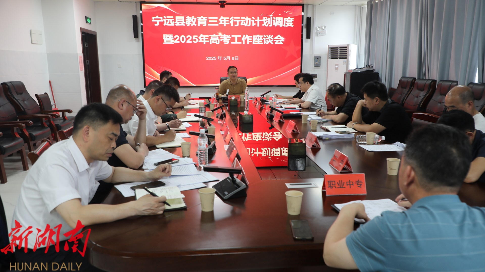 湖南日报·新湖南客户端5月9日讯(通讯员 李严军) 5月8日下午,宁远县召开教育三年行动计划调度暨2025年高考工作座谈会。县委副书记、县长毛政出席并强调,要锚定教育高质量发展目标,以系统思维统筹推进高考备考与教育综合改革,促进全县教育事业高质量发展。副县长曾彩平及相关部门负责人参加会议。