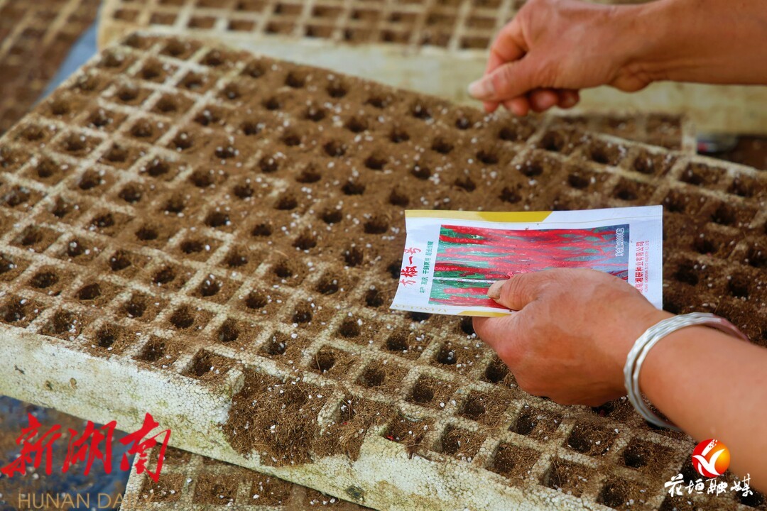 “大家注意了,育苗盘每个孔里只能放一粒种子,而且要放中间,不能放多了,以免影响种子后续生长。”合作社负责人龙康正在来回走动,给村民们讲解着播种的注意事项。