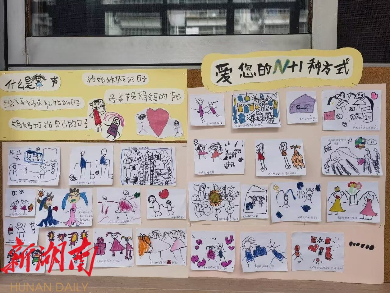 活动现场洋溢着浓浓的爱意。在"爱您的N+1种方式"图画展示区,孩子们用稚嫩的画笔描绘出对妈妈的爱意,一幅幅充满童趣的画作组成了一道温馨的"感恩墙"。五岁的朵朵小朋友指着自己的画作说:"我画了帮妈妈捶背、给妈妈唱歌,还有好多好多爱妈妈的方式!"