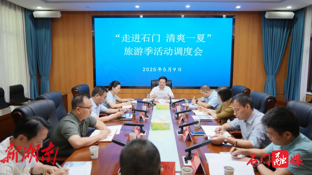 新石门客户端5月9日讯(记者 郑凯洲 王章建)5月9日,县委书记吴兴国专题调度“走进石门 清爽一夏”旅游季活动筹备工作,强调要加强组织领导、精心筹备,依托“走进石门 清爽一夏”旅游季活动,全方位展现石门文旅资源,聚力打造湖南省康养避暑目的地,真正让石门的清凉“热”起来。县领导陈建军、胡中华、戴海蓉参加。