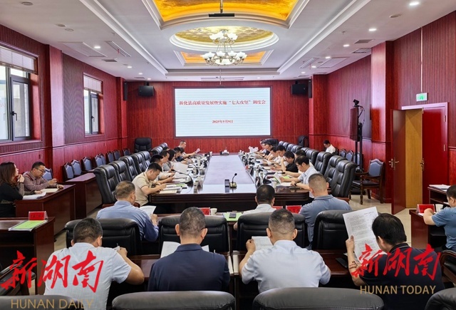 湖南日报·新湖南客户端5月10日讯(通讯员 康爱军 曾振科)5月9日,新化县召开高质量发展暨实施“七大攻坚”调度会。县委副书记、县长彭韬主持,县领导陈国聪、李燕、陈元怀、刘志军、段智洪出席。