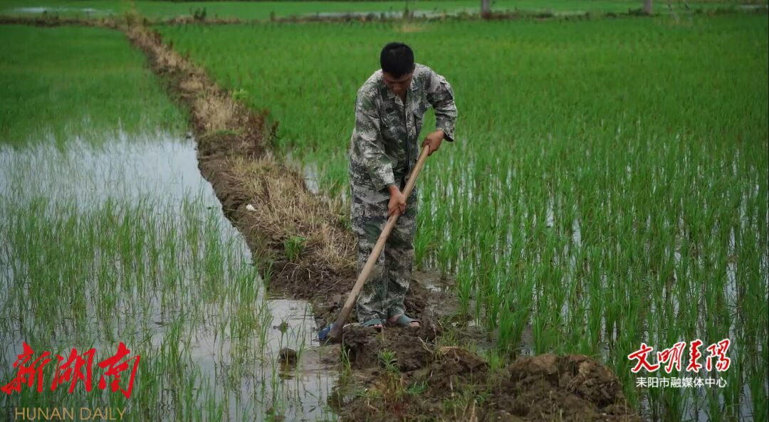 在耒阳市小水镇畔塘村的水稻种植区,大雨过后,种植大户李国辉和农技专家正在稻田仔细查看秧苗情况。作为耒阳市丹京农业专业合作社创办人,李国辉在当地农业专家的指导下,在狭窄丘陵地区实行油稻混种,不仅让自家稻田实现高产量和高质量,还带动了周边农户共同发展。