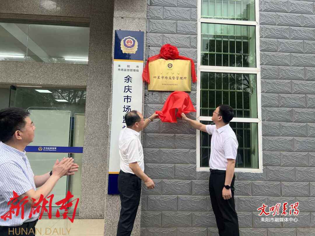 耒阳融媒5月9日讯(记者 贺智 匡经强 通讯员 李欢) 5月8日,市市监局余庆市场监督管理所举行“四星”市场监督管理所揭牌仪式。市人大常委会副主任李连飞,副市长王曙琦出席仪式并为该所揭牌。