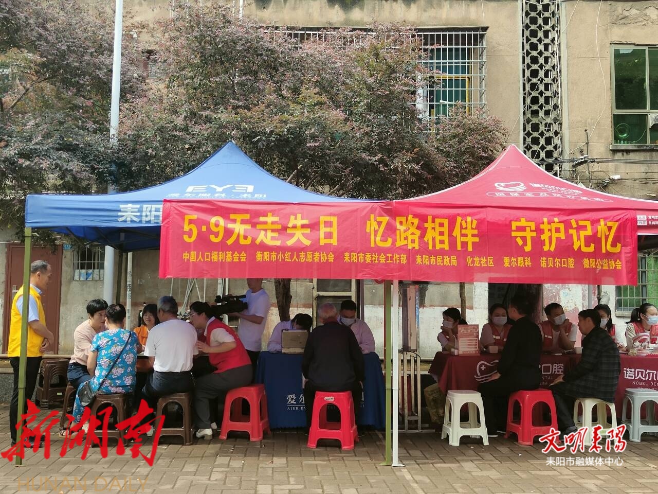 耒阳融媒5月10日讯(记者 贺智 匡经强) 5月9日上午,耒阳市委社会工作部、衡阳市小红人志愿者协会、耒阳市微阳公益协会、爱心企业爱尔眼科、诺贝尔口腔等多家单位联合主办的“5.9无走失日·忆路相伴·守护记忆”黄手环防走失活动在化龙社区成功举办。