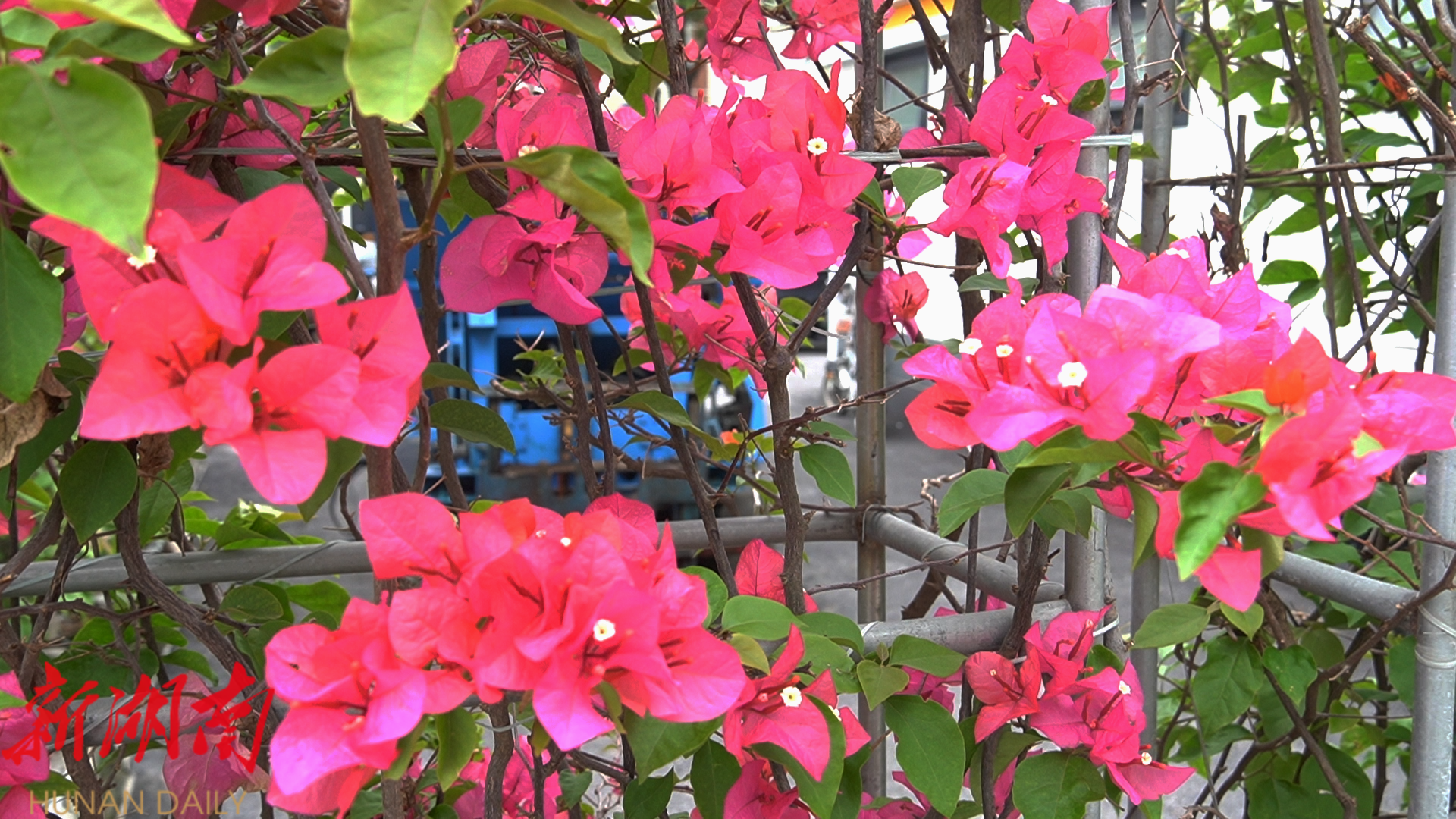 光叶子花又名簕杜鹃、小叶九重葛 ,其 茎粗壮 、 枝下垂,无毛或疏生柔毛 。 光叶子花适应性强、养护成本低,既能美化环境,又能改善空气质量,是城市生态建设的优选植物。 “每天打扫完卫生回到驿站,看到这片花墙,心情都会变好!”清洁工王姨举起手机记录着花开。