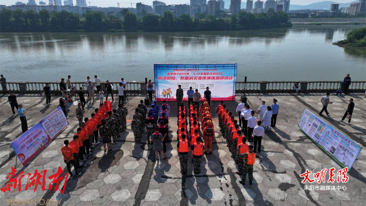 耒阳融媒5月12日讯(记者 蒋境 刘喜 雷坤) 在第17个“5·12全国防灾减灾日”即将到来之际,5月11日上午,耒阳市在城区沿江路耒水蔡伦号码头举行以“人人讲安全、个个会应急——排查身边灾害隐患”为主题的2025年“5·12全国防灾减灾日”防汛抢险、防震减灾宣传演练活动,旨在增强全民防灾意识,提升应急队伍实战能力,守护群众生命财产安全。