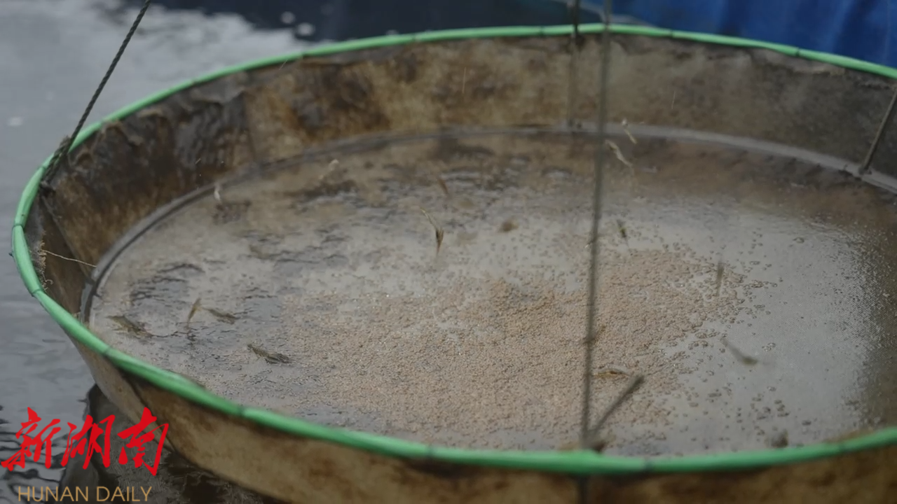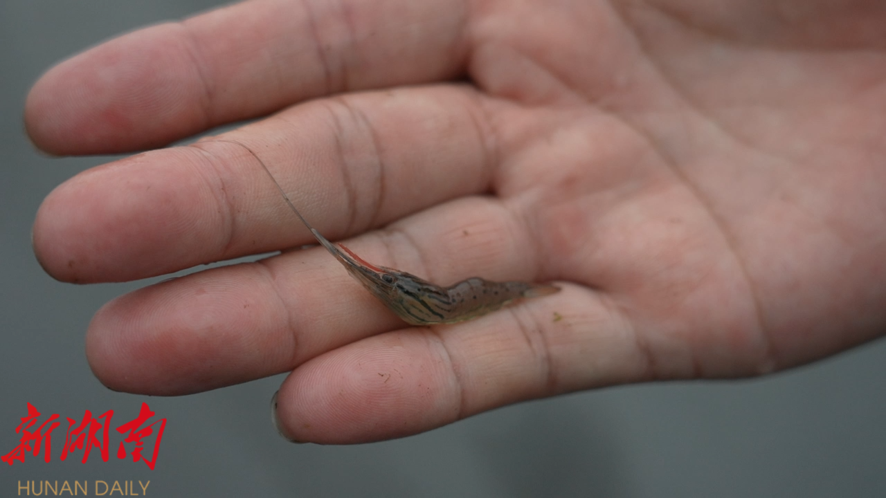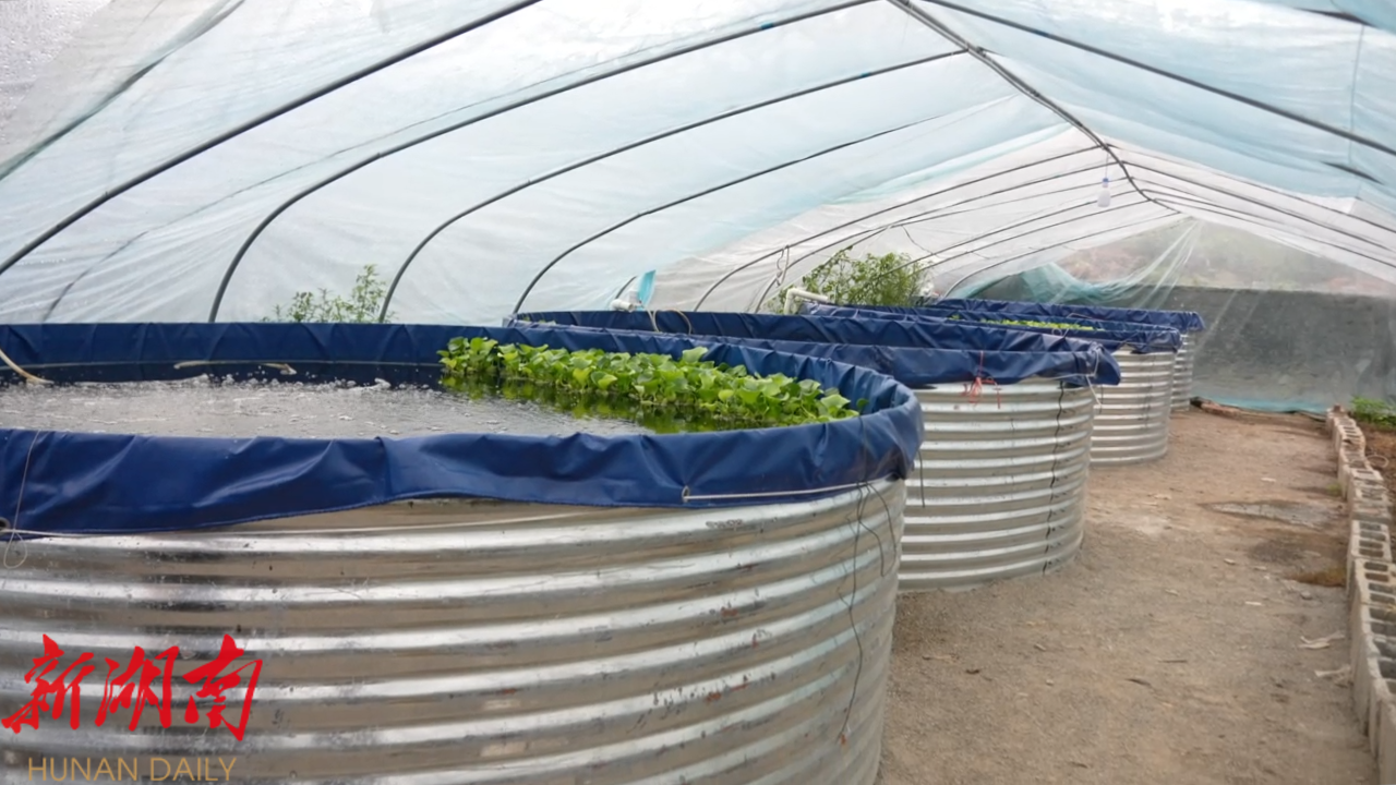 “这个桶里的水是直接接过来的山泉水,水质很好,我们在桶里还养了水葫芦和水草,水葫芦既能净化水质,又能给虾提供休息的地方,冒泡的地方是增氧盘。” 中方县花桥镇千丘田村养虾基地技术员彭泽武介绍道,罗氏虾一生中要脱壳11到12次,每次脱壳后身体脆弱,极易被未脱壳的虾攻击,而水葫芦和水草为其提供了藏身之所,大大提升了成活率。