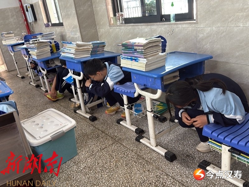 上午10时,警报声响起,演练正式开始,同学们迅速蹲至课桌下方,伏地、遮挡、手抓牢,护住头部。警报解除后,学生在老师们指挥下,弯腰低姿,沿预定路线快速撤离至操场安全区域。整个过程中,疏散路线清晰,撤离有序,无拥挤、推踩现象。