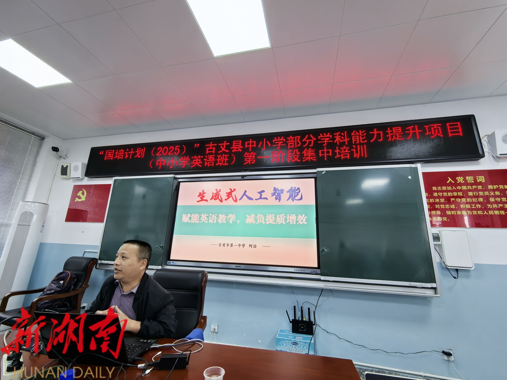 新湖南客户端5月12日讯(通讯员 余思颖 张岱昊 向谢珍)为切实提升古丈县中小学英语教师专业素养,适应新课标、新教材、新高考与新中考的教育改革背景,“国培计划(2025)”古丈县中小学英语教师能力提升培训班于5月6日至10日顺利开展第一阶段集中研修。全县40位中小学英语教师齐聚一堂,开启为期五天的专业成长之旅。本次培训聚集了众多专家和名师,内容丰富多元,涵盖师德师风建设、学科教学能力提升以及人工智能在英语教学中的应用等丰富内容。