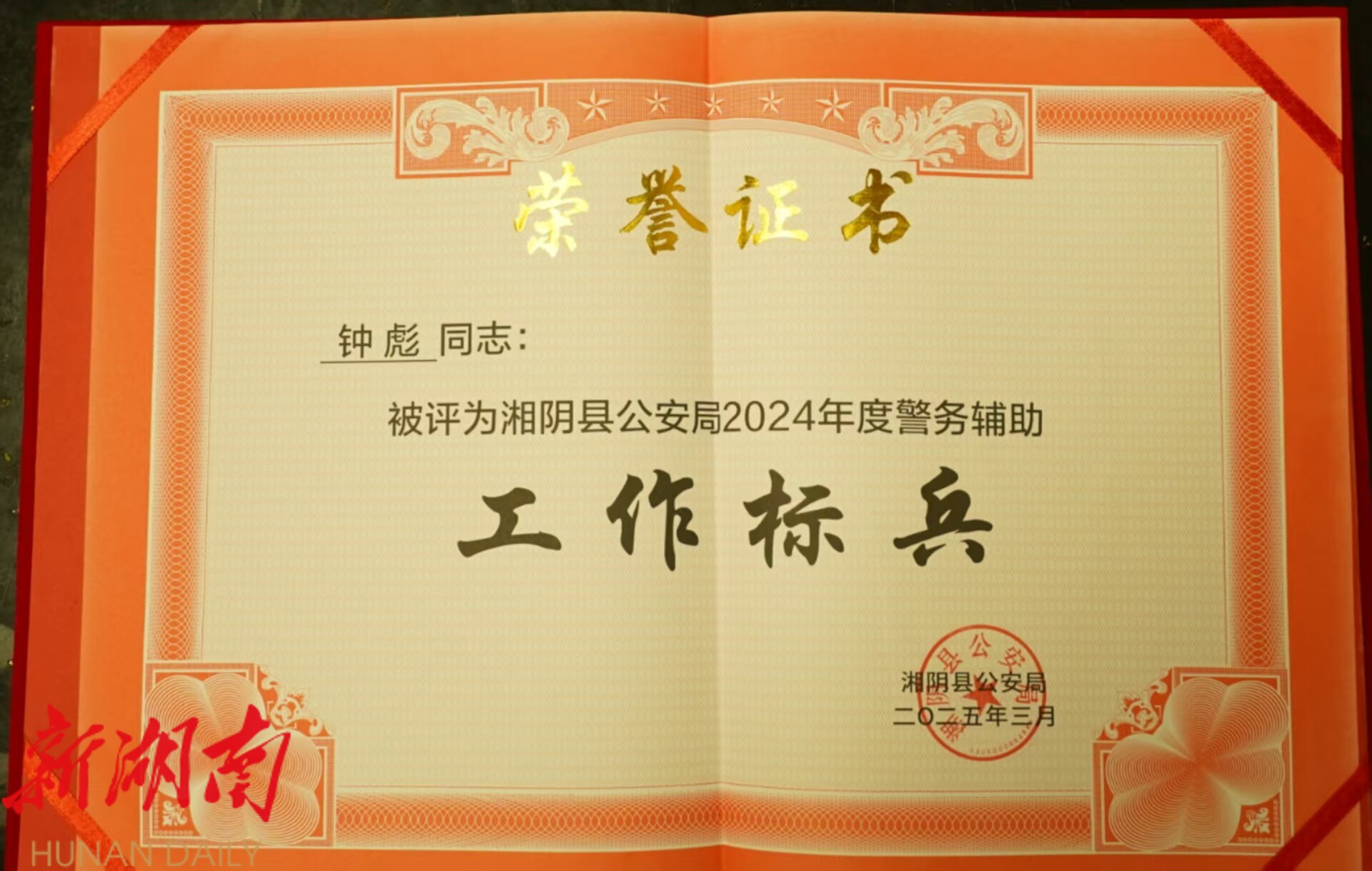 湘阴县公安局交警大队五中队“88后”辅警钟彪,从警6年以来,始终以满腔热忱投入工作,用真情践行从警初心,以实干担当使命。无论是琐碎的日常事务,还是繁重的执勤任务,他都一丝不苟、精益求精。在同事眼中,他是任劳任怨的“老黄牛”;在领导心里,他是值得信赖的“多面手”。因工作表现突出,他荣获“岳阳市公安机关国庆安保工作先进个人”称号,并多次获评“湘阴县公安局优秀辅警”。