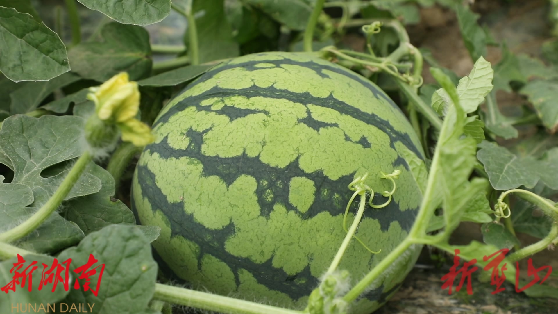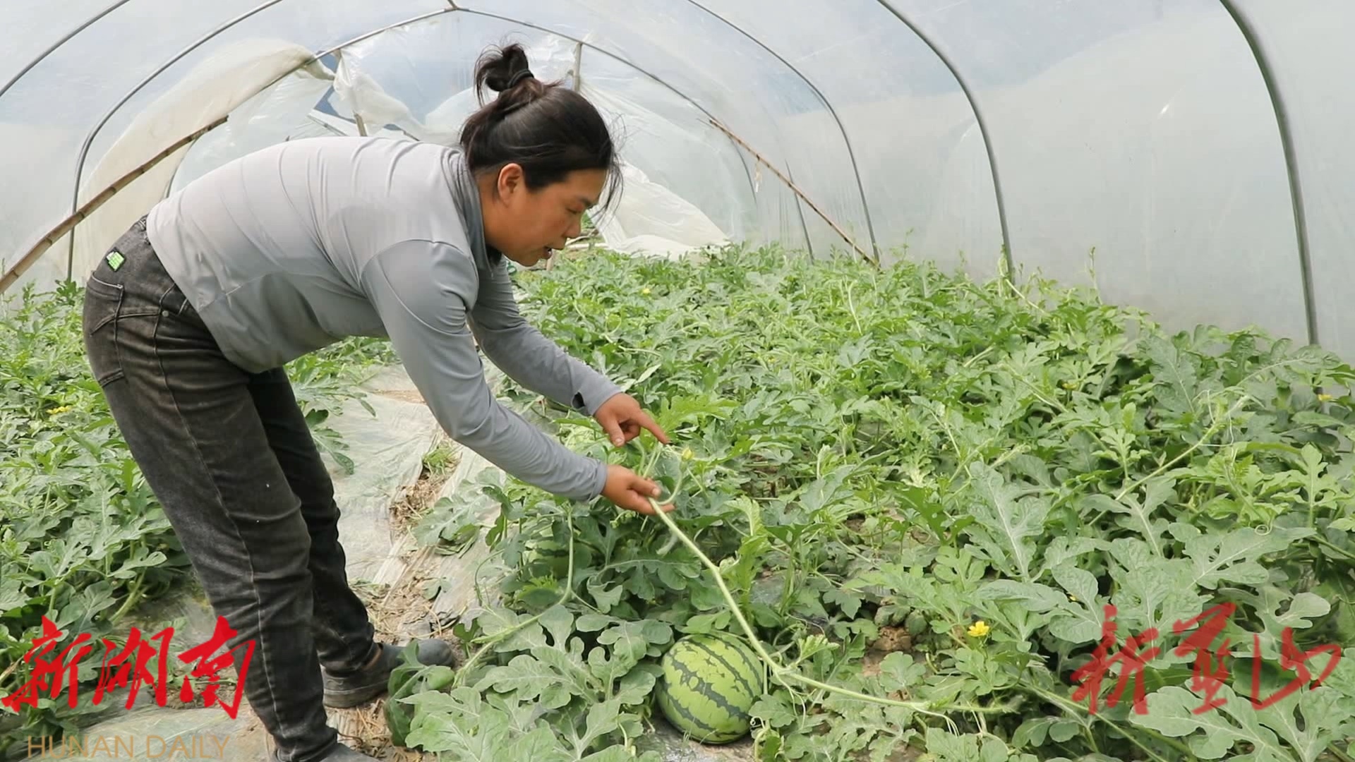 湖南日报•新湖南客户端5月12日讯 (通讯员 赵彬 李秋妃 贺朝阳(实习)) 初夏时节,瓜果飘香。在蓝山县塔峰镇花果园村的大棚内,一个个圆润饱满的西瓜提前一个月抢“鲜”上市,为广大消费者带来了夏日里的第一口清甜。