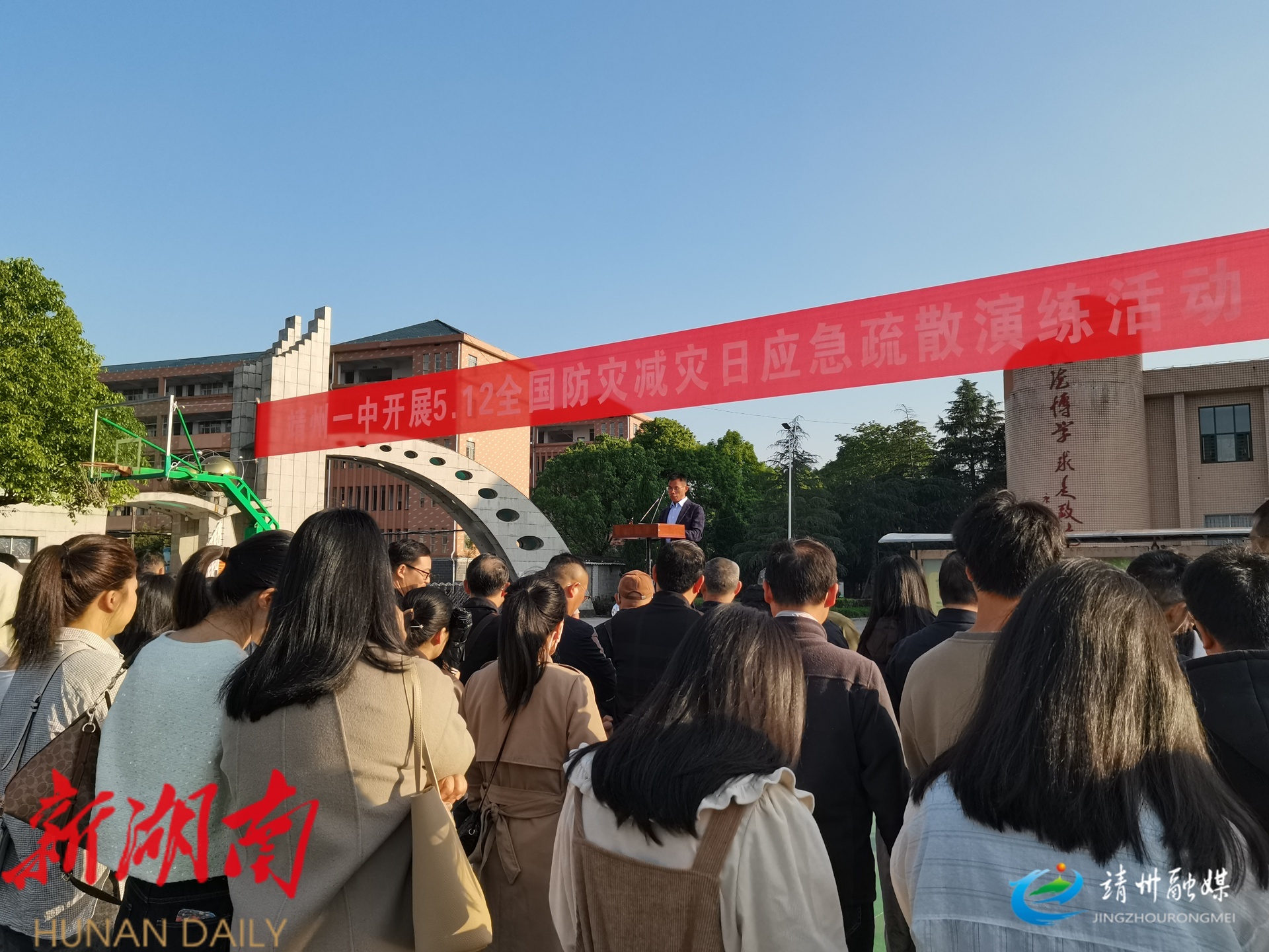 靖州一中组织高一年级和初中部全体师生开展应急疏散演练。学校提前制定预案、明确职责与路线,班主任进行知识教育。演练中,学生在教师引导下,采用猫腰、弓身、掩鼻姿势,快速、有序地按照既定疏散路线撤离至操场安全区域。整个疏散过程紧张有序,待全体学生安全集合,各班迅速清点人数并上报。随后,校领导肯定演练成效,强调防灾减灾重要性,讲解应对知识与技能。