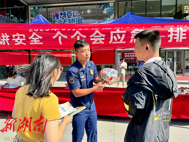 在县城人流密集区,各部门结合行业特点联合设立咨询台,通过装备展示、现场教学、展板宣传、资料发放等多种形式,向过往市民普及地质灾害、森林防火、消防安全等相关知识及法律法规。与此同时,志愿者们耐心地为大家讲解在日常生活中如何排查身边的灾害隐患,以及面对突发灾害时应采取的正确应对措施。