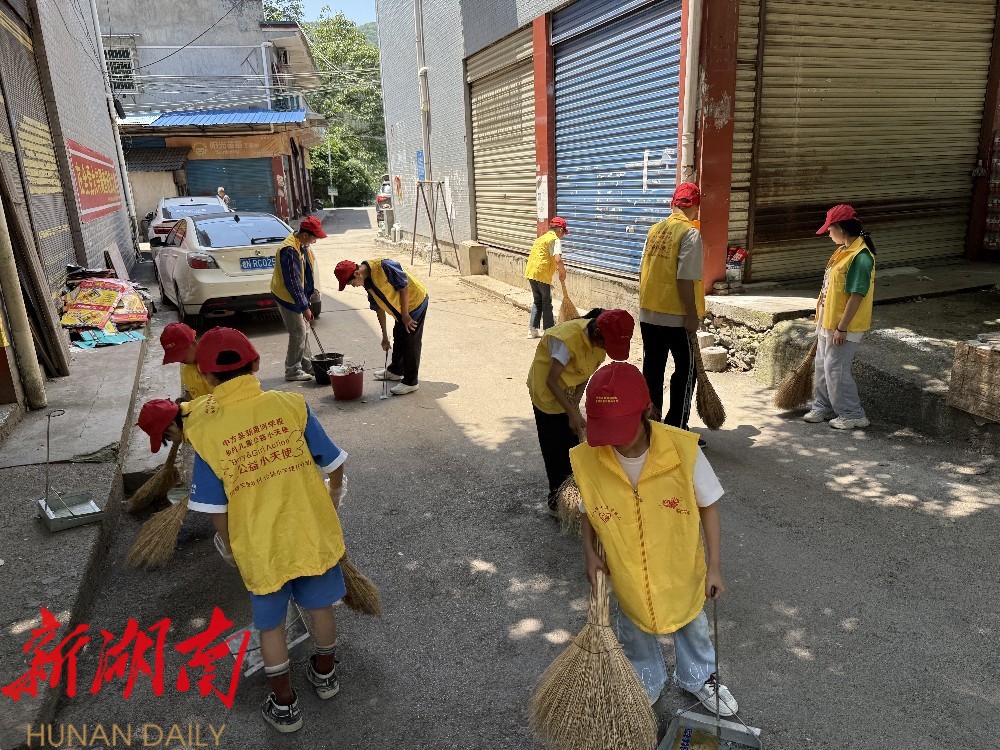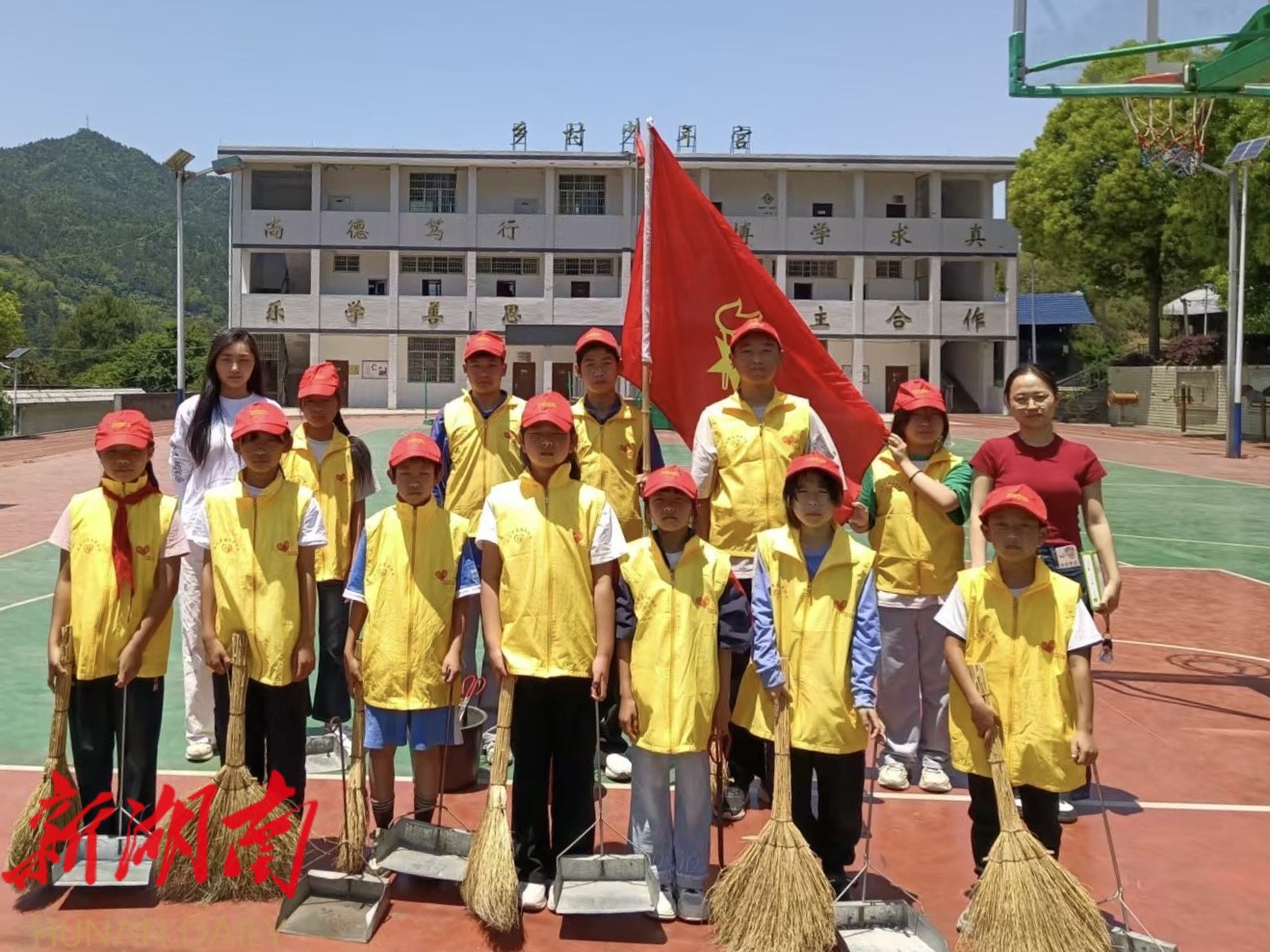 活动首日,教导主任匡老师与学校团支部书记蒙老师化身 “劳动导师”,带领三至八年级每班选派的2名学生,深入街道开展卫生清扫行动。同学们干劲十足,手持扫帚、夹子等工具,穿梭在镇街小巷、马路两旁,对市场赶集周边等重点区域进行细致清理,不放过任何一个 卫生死 角,用汗水为乡村环境 “焕新颜”。