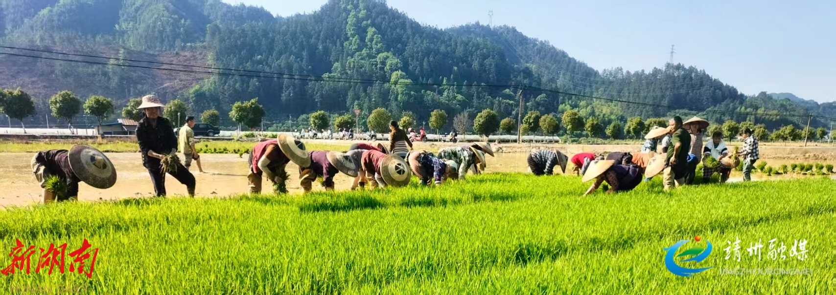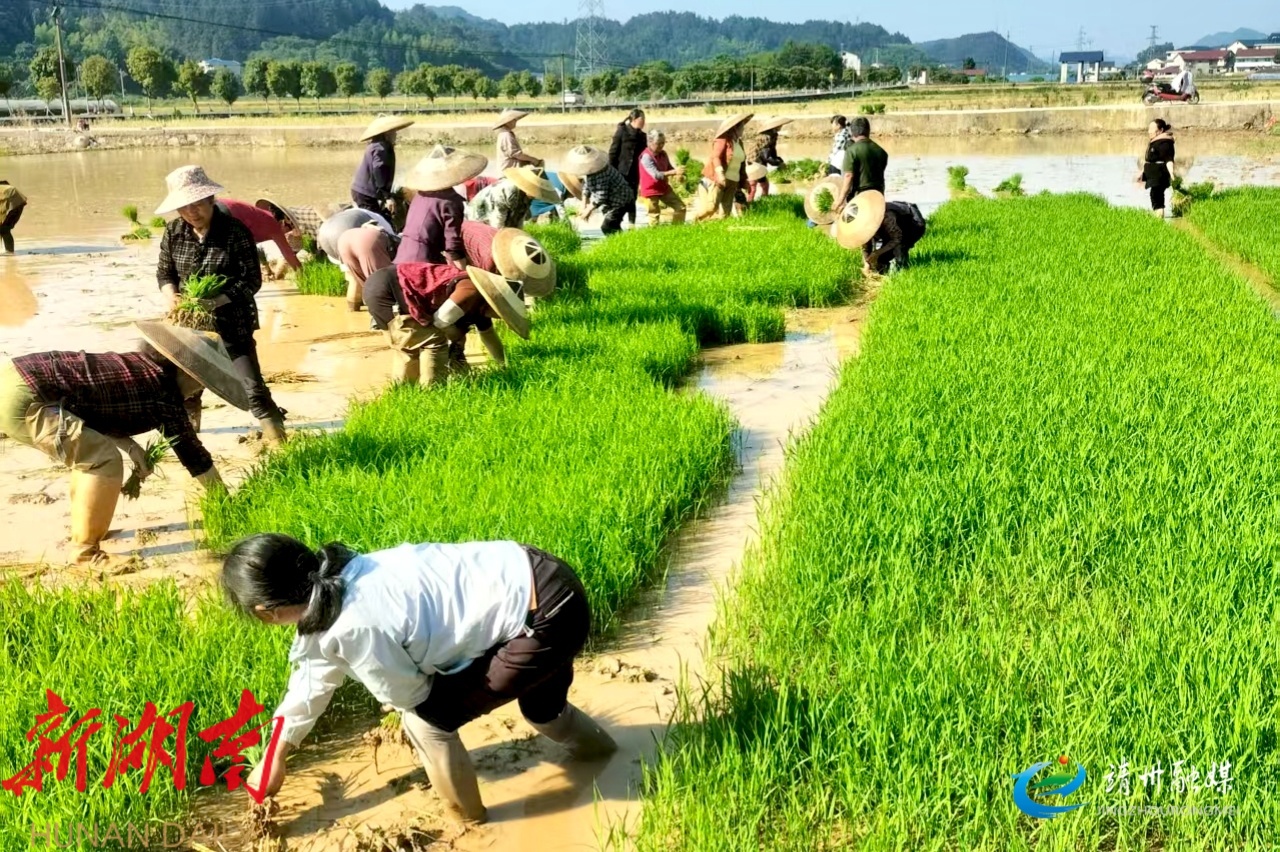 靖州融媒5月13日讯 (通讯员 梁华)5月13日,在靖州苗族侗族自治县二凉亭村水稻制种基地,村民正抢农时,进行制种父本移栽。