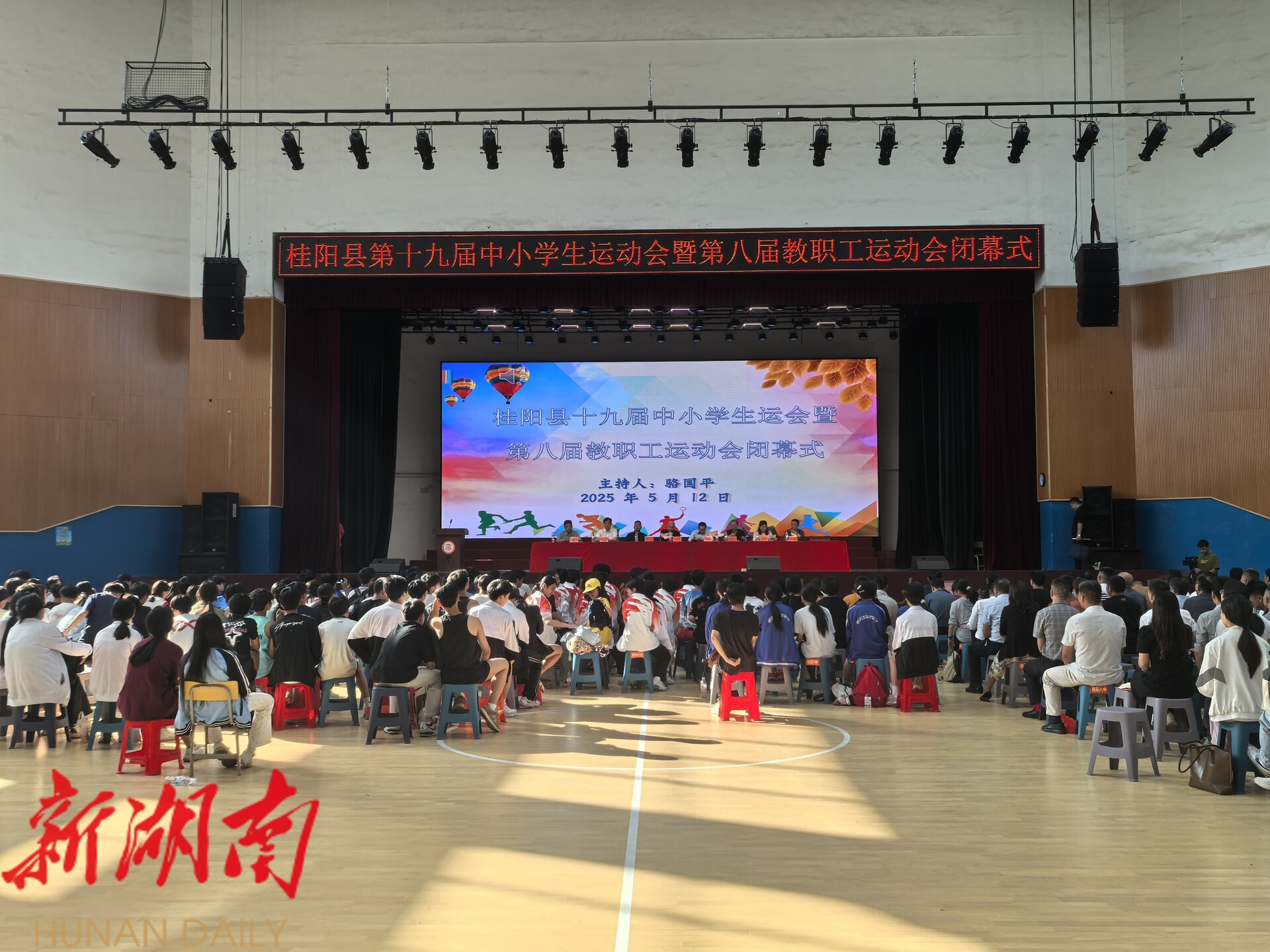 新桂阳5月13日讯(记者 刘克坚 唐汀 )5月12日, 县第十九届中小学生运动会暨第八届教职工运动会在桂阳一中体艺馆圆满落下帷幕。