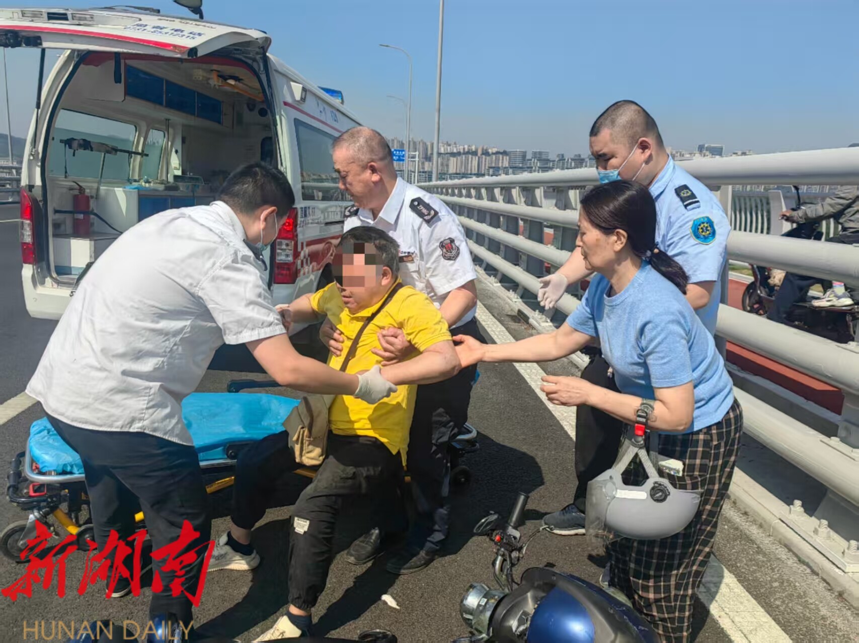 湖南日报·新湖南客户端5月13日讯(通讯员 陈剑岷)5月12日上午,家住开福区秀峰景园小区的肖先生骑电动车经过兴联路大桥时不慎摔倒无法动弹,只好给妻子打电话求救。