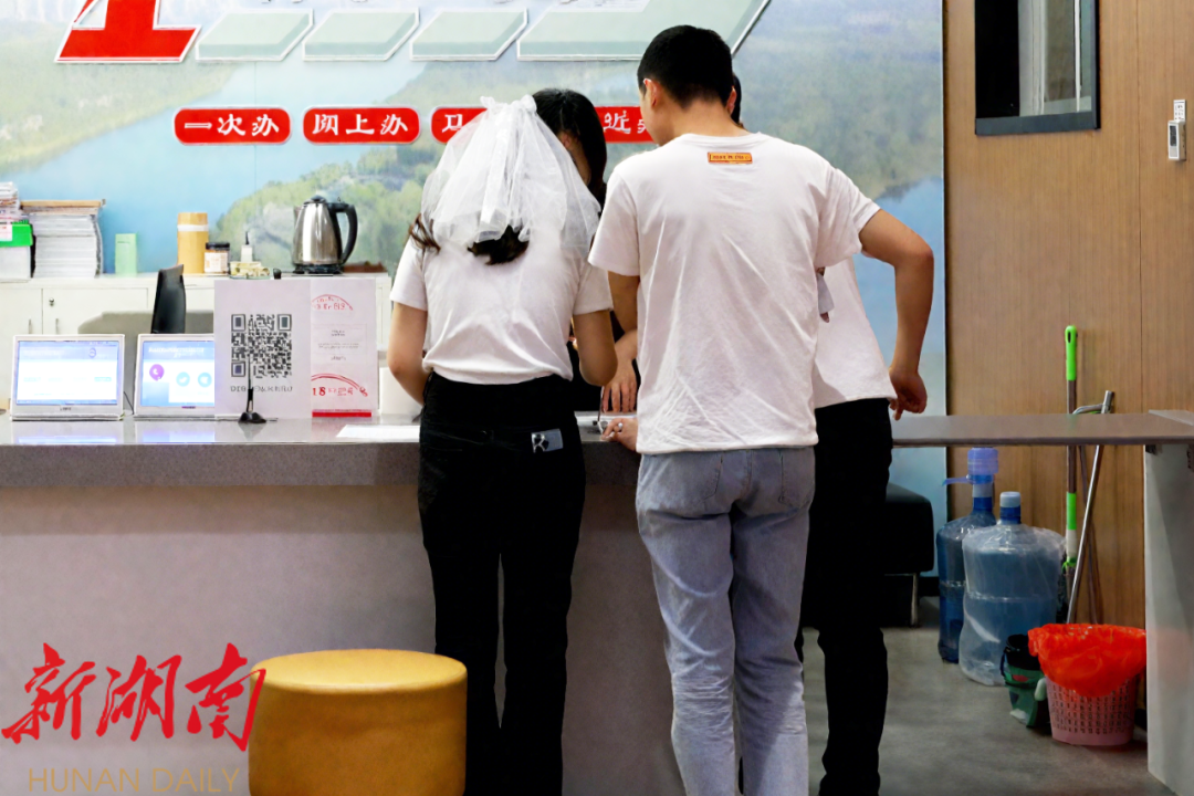 在婚姻登记中心,张新城、谷芬出示结婚照、身份证,经过工作人员婚前问询,并签署《申请结婚登记声明书》《婚姻登记个人信息信用风险告知书》等手续材料,很快便领到了结婚证,整个过程高效又顺畅。“我们通过联网核对当事人身份及婚姻状况信息,几分钟就能办完结婚登记。”零陵区婚姻登记中心主任眭建明介绍道。