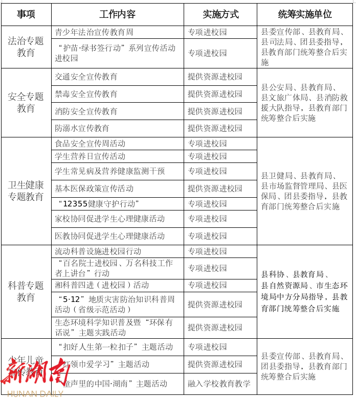 中方融媒5月13日讯 为持续推进整治形式主义为基层减负,切实减轻中小学教师非教育教学负担,根据中央省市县有关要求,县委教育工作领导小组近日印发《2025年县级层面中小学校社会事务进校园事项白名单》,现面向社会予以公布。
