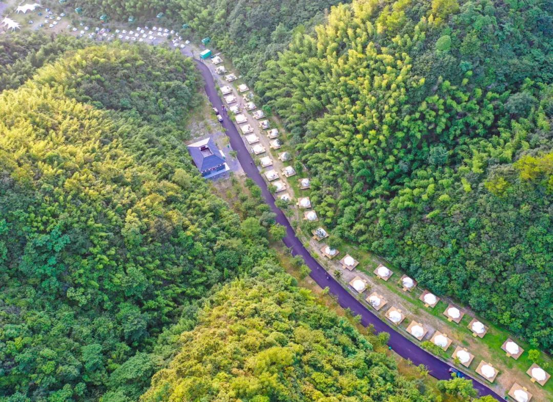 双牌县阳明山国家森林公园,游客在万和湖帐篷露营基地休闲