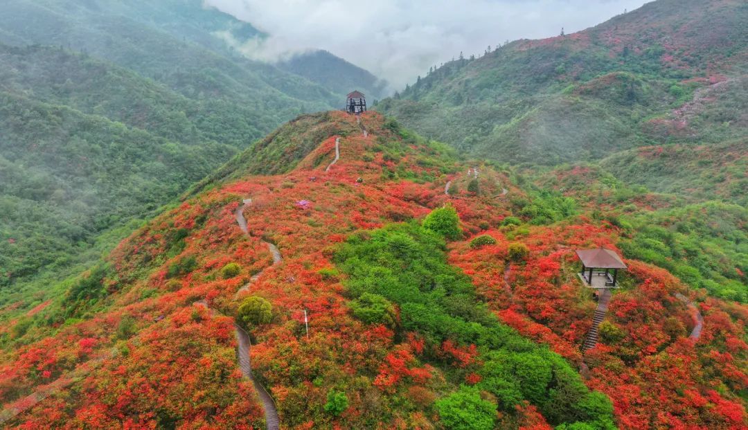 浏阳市大围山国家森林公园,万亩野生杜鹃花次第开放,漫山遍野姹紫嫣红