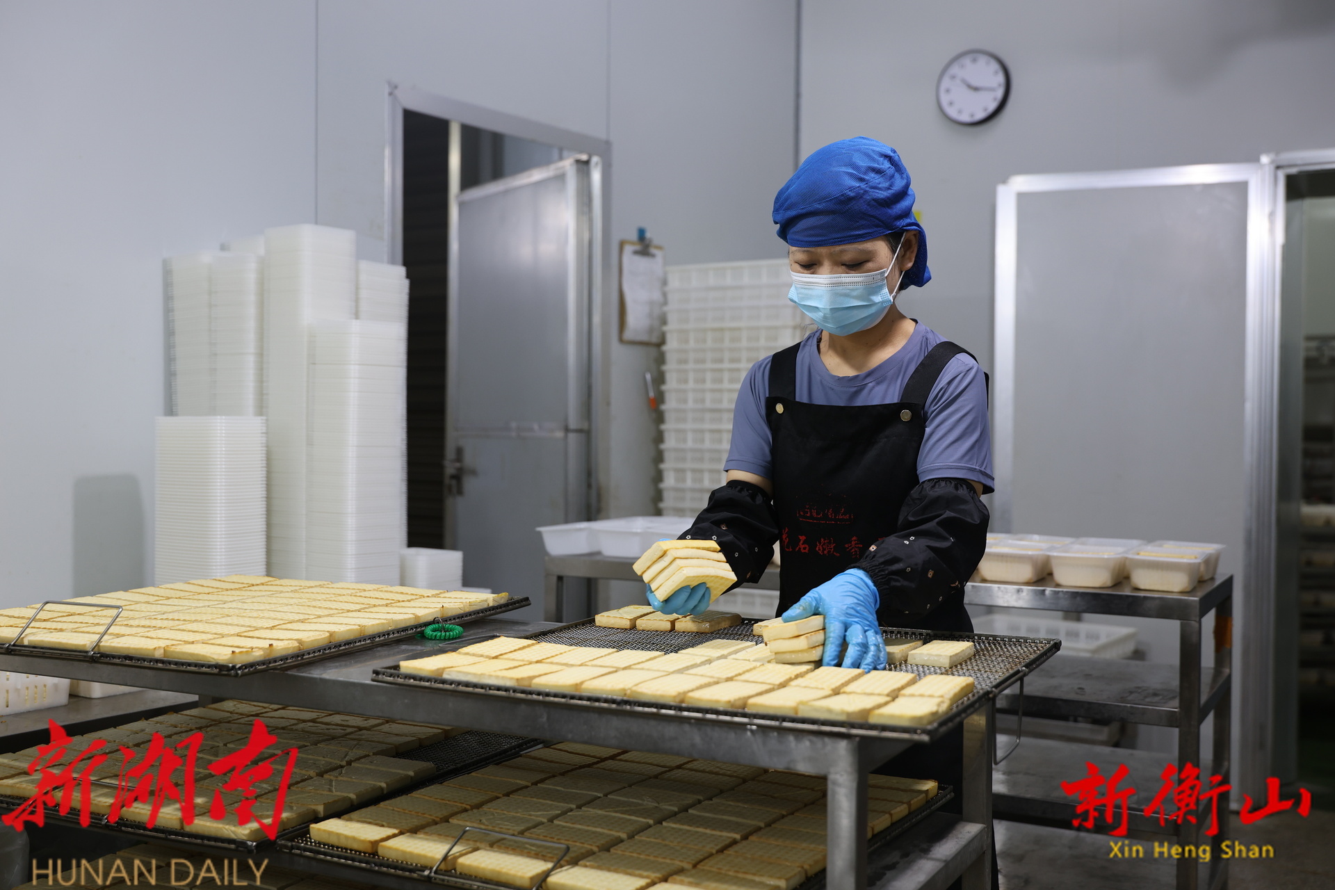 在湖南豆粒香食品有限公司的生产车间内,工人们熟练地操作着各类设备,从选豆、泡豆、磨浆,到煮浆、点卤、压制、熏制,每一道工序都严格把关,空气中弥漫着浓郁的豆香。