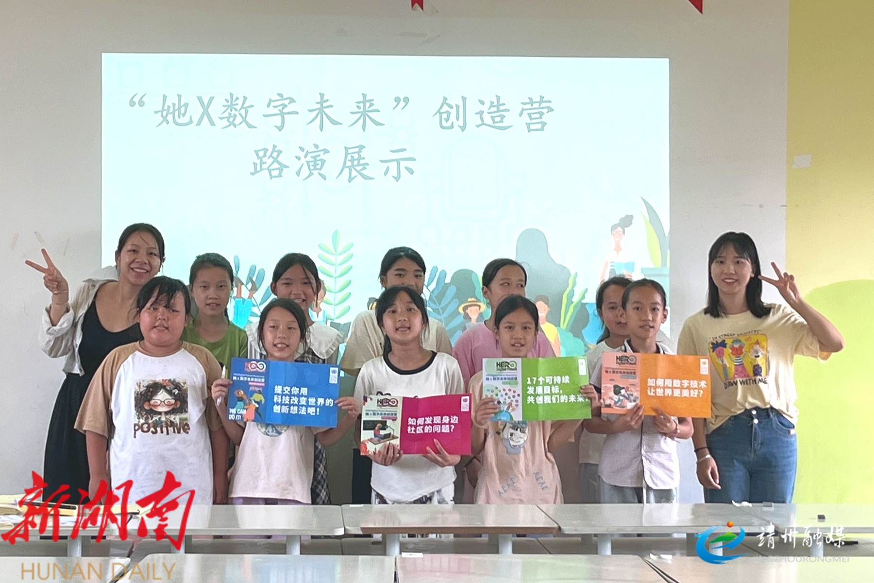 靖州融媒5月13日讯 (通讯员 张戈 梁靖 吴漫)5月12日,靖州苗族侗族自治县太阳坪乡中心小学开展“她X数字未来”创造营路演展示活动, 组织五年级女生参与其中,通过学习数字化技术与可持续发展目标(SDGs)的前沿知识,聚焦社区实际问题,用创新思维提出解决方案。