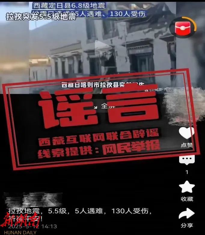 辟 谣 西藏日喀则市拉孜县发生5.5级地震,警惕这些网络谣言!
