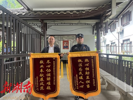 武陵源区融媒体中心5月6日讯(通讯员 罗接生)5月6日,两面跨越千里的锦旗从天津寄达张家界国家森林公园,袁家界景区管委会负责人吴玉见与吴家峪门票站执法人员卓海雄共同接收这份特殊的谢意,这不仅是对工作人员暖心服务的认可,更是张家界国家森林公园“五员一体”责任担当的生动体现。