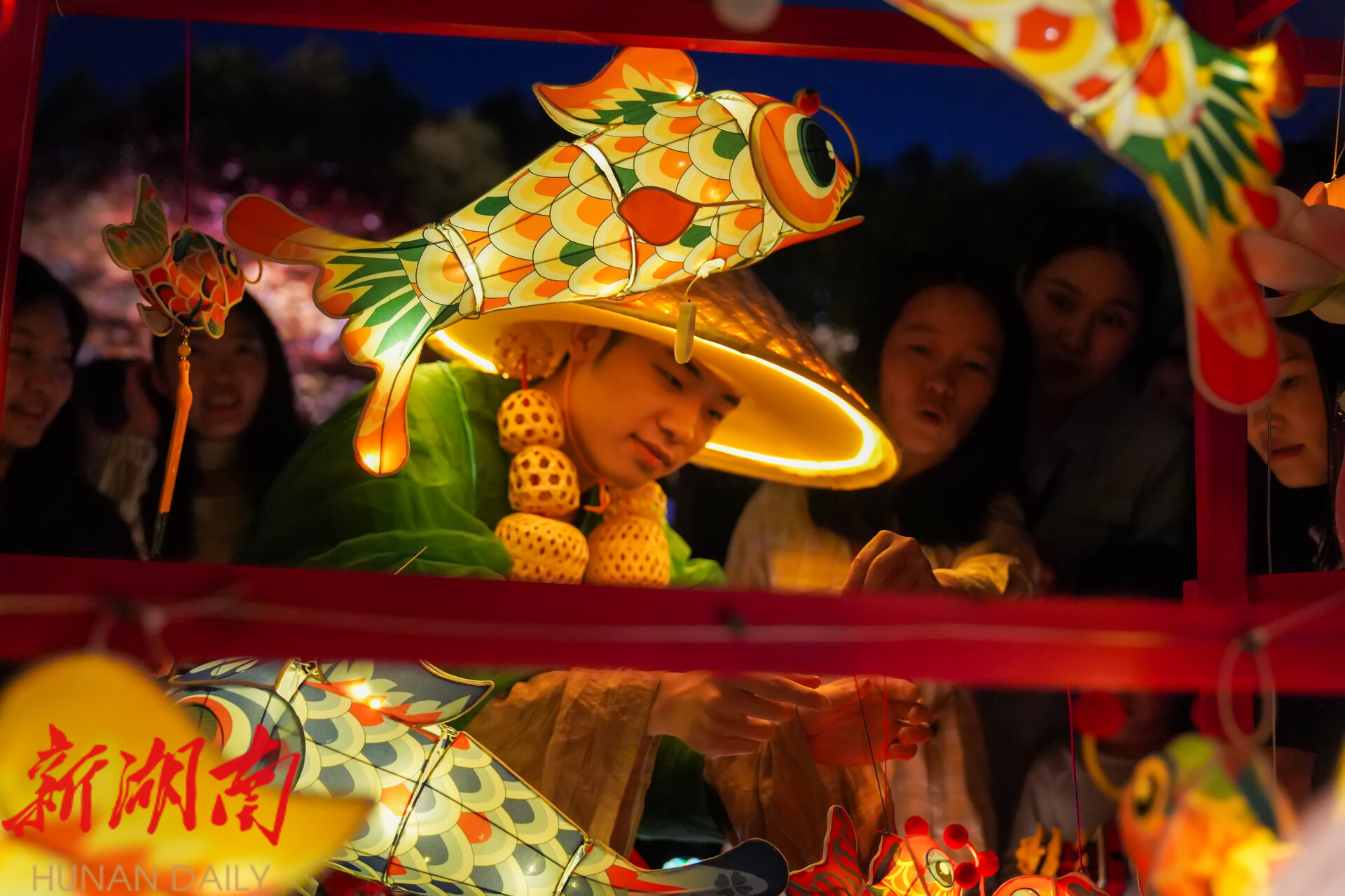 南门“读者”剧场结束后,媒体代表们在演员们的引导下起身提灯,行径向前,穿越五朝楼观处热闹的集市,沿途的小贩们吆喝不断,卖花卖甜酒卖灯笼,仿佛瞬间穿越到庆历年间的巴陵。