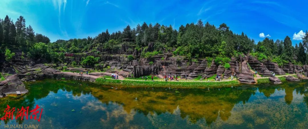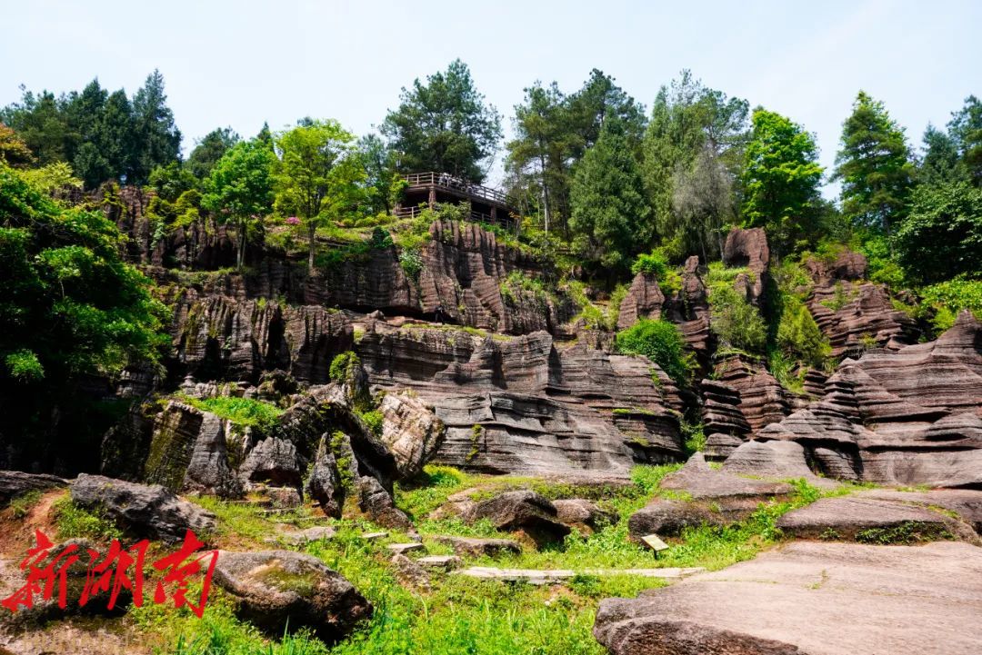 国家地质公园红石林景区 的万亩红色石林在阳光照耀下熠熠生辉,形态各异的石柱仿佛在诉说地球的沧桑变迁。除了观赏震撼的地质奇观,您还能参与土家风情文化表演,与当地阿哥阿妹同唱悠扬对山歌,共跳豪迈摆手舞。