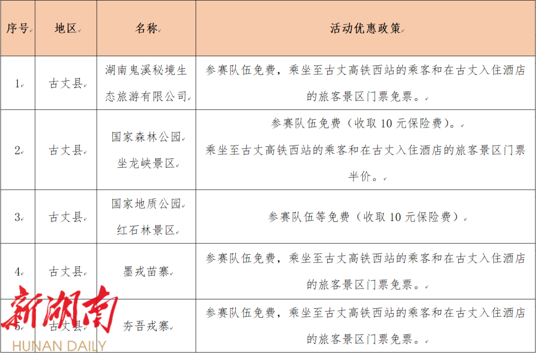 活动期间,参赛队伍可免费游玩 (仅需缴纳10元保险费);此外,乘坐至古丈高铁西站的乘客以及在古丈入住酒店的旅客,可享受半价购票优惠 。