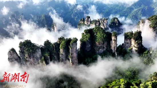据了解,近段时间张家界连续晴雨交加天气,为各大景区出现云海美景创造了必要条件,目前张家界国家森林公园正是各地游人错峰出游的最佳目的地。