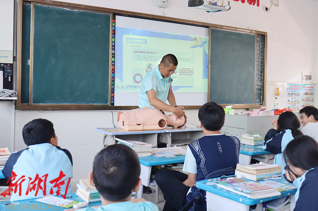在操作环节,救援队讲师们演示了水中憋气、模拟人模型CPR和海姆立克急救法。宣讲员强调按压动作要领,并指导学生实践。两位同学在讲师的指导下完成挑战,获得赞扬。同学们通过现场实际操作,深刻意识到急救细节的重要性,认识到这些步骤在紧急情况下或许能挽救生命。