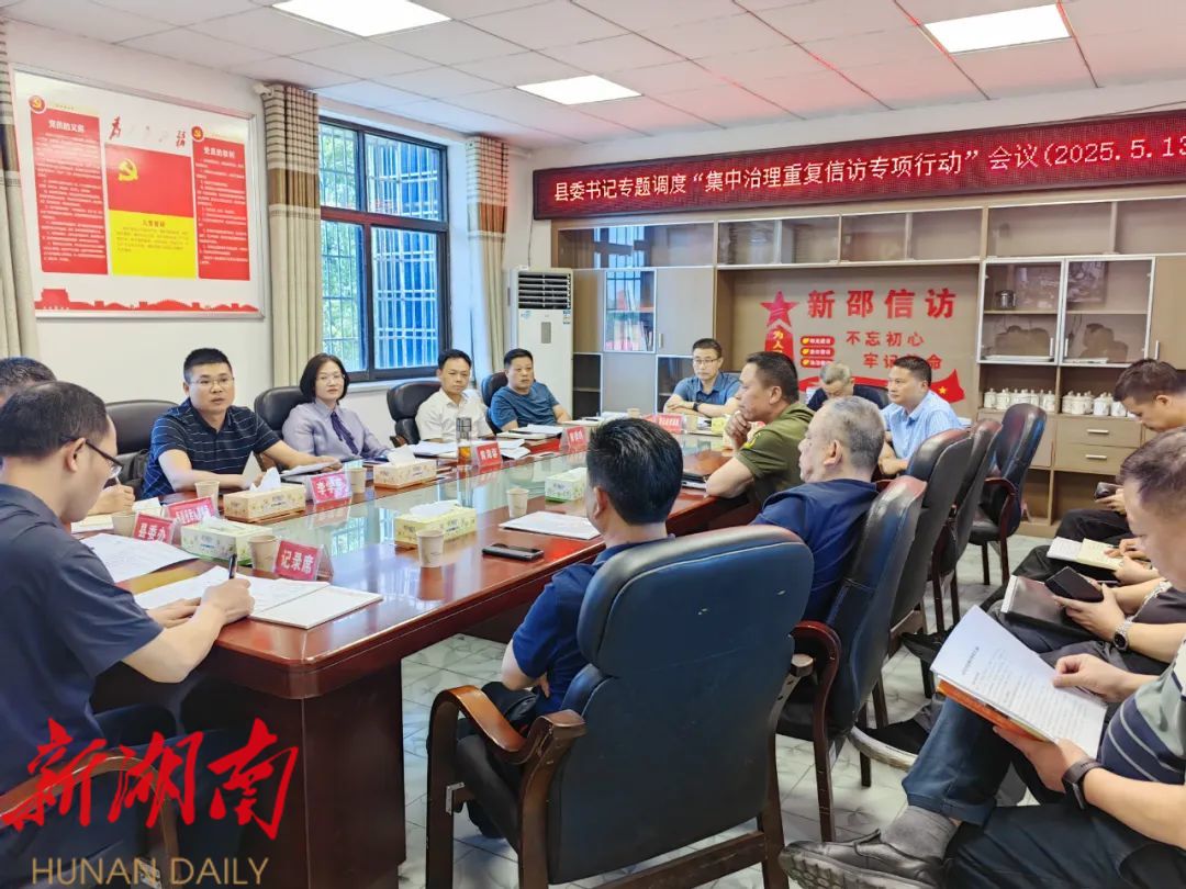 新新邵客户端5月14日讯(通讯员 廖光明)5月13日,新邵县委书记黄海蓉在县信访局调度重复信访治理工作并坐班接访,她强调,要深入学习贯彻习近平总书记关于加强和改进人民信访工作的重要思想,全面落实中央、省、市关于信访工作的决策部署,推动重复信访治理工作走深走实。县委常委、政法委书记曾律玮主持会议,县领导刘焕、李学军、杨香勇及有关县直部门负责人参加。