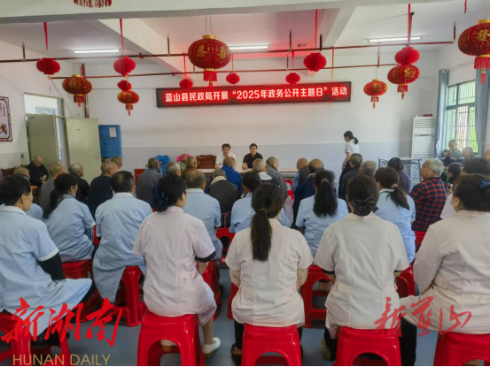 新蓝山客户端5月14日讯 (通讯员 黄超 邓冲)5月14日,蓝山县民政局来到湘江源敬老院开展“政务公开主题日”活动。