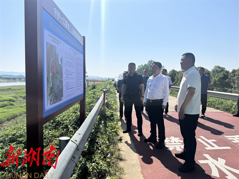 在荣家湾街道六合垸、新开镇马山村石墨港堰和筻口镇南源水库牛蛙养殖场,吴光文实地查看了新墙河河道管理范围跑马场情况、黑臭水体试点整治项目和污水排放情况。他强调,要聚焦河道管理、黑臭水体、养殖污染等重点领域,坚持“当下改”与“长久立”相结合,以“零容忍”的态度整治违建、偷排、返臭等顽瘴痼疾;要强化协同联动,属地乡镇要做到守土有责、守土负责、守土尽责,职能部门要强化行业监管,构建“全链条治理、全要素管控、全社会参与”的生态治理新格局。
