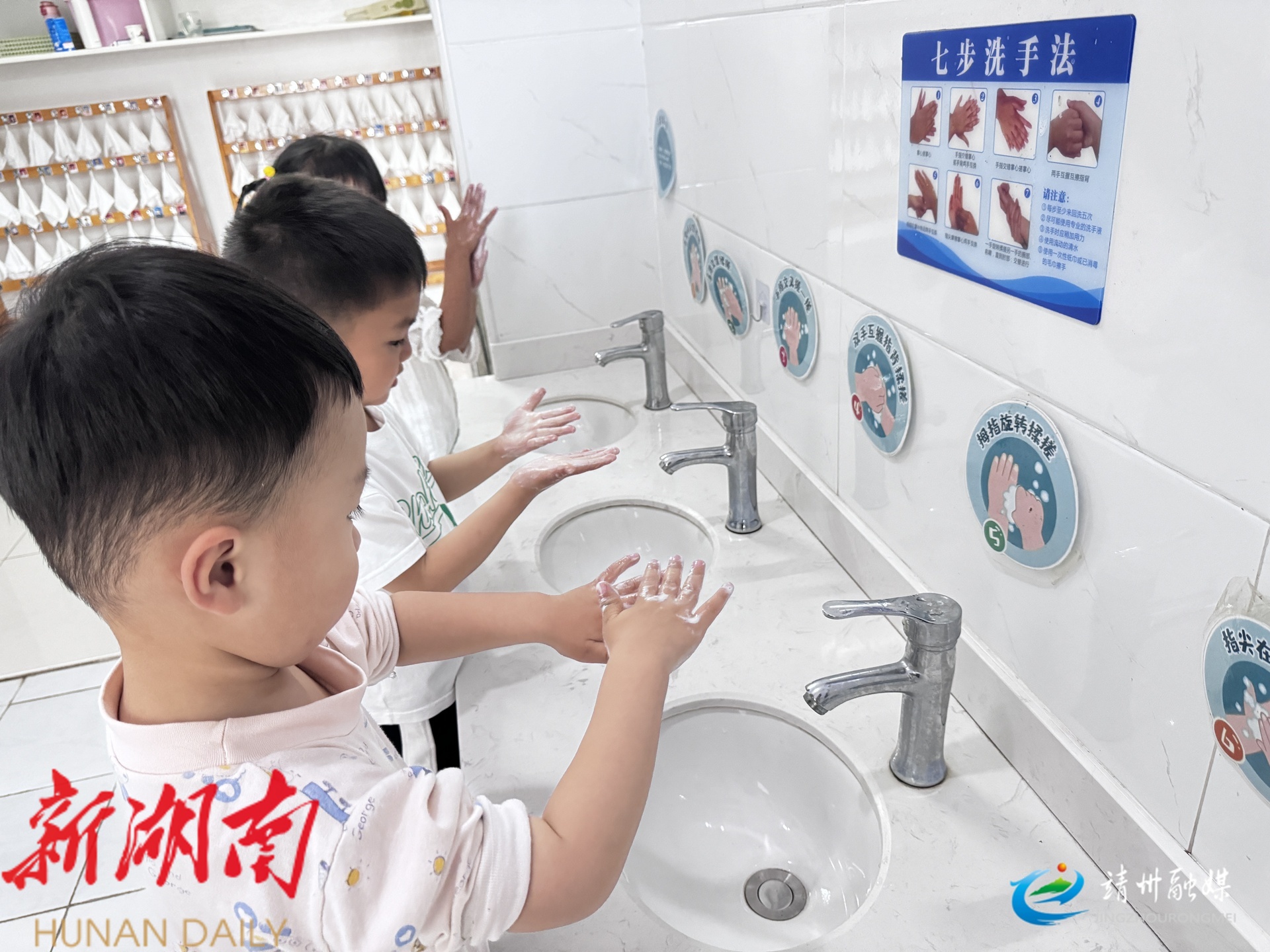 幼儿正在进行“七步洗手法”实操(田欣莲 摄)