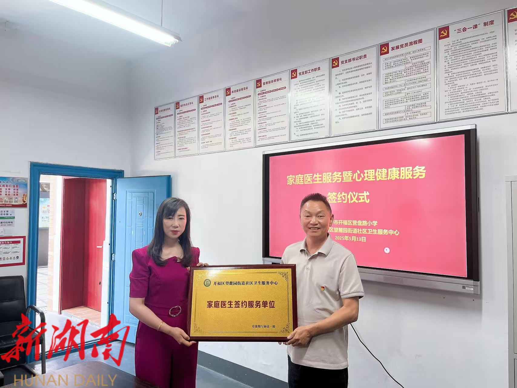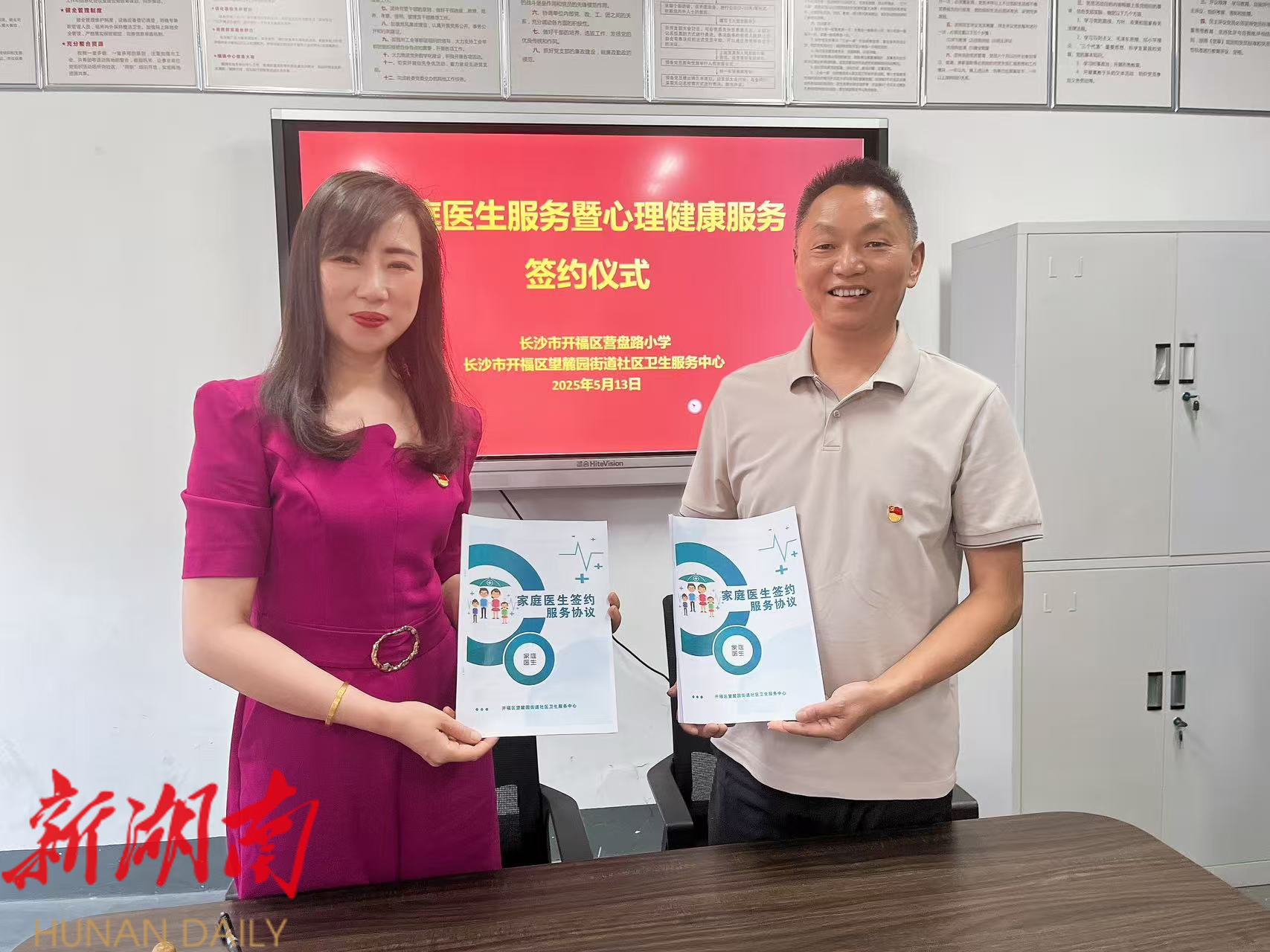 湖南日报·新湖南客户端5月14日讯(通讯员 谢斌)5月13日,开福区望麓园街道社区卫生服务中心党支部与开福区营盘路小学党支部以党建为引领,聚力促发展,在学校党建活动室共同开展家庭医生暨心理健康签约服务进校园的特色主题党日活动。