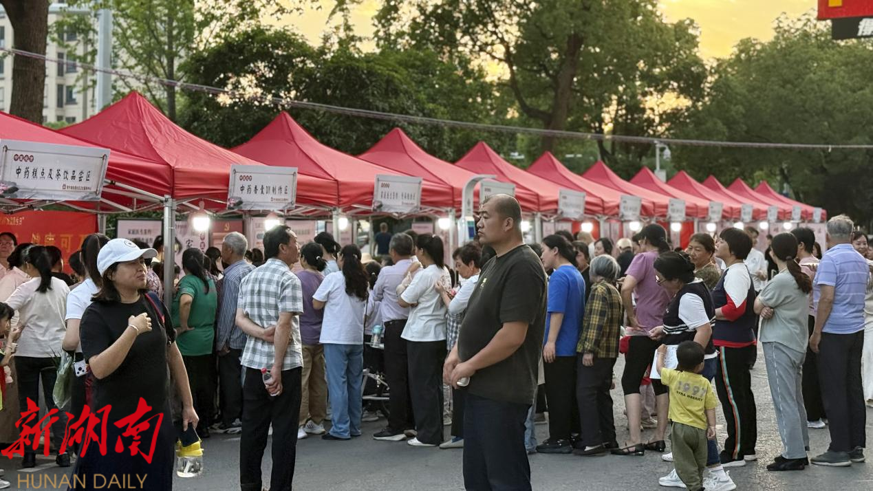 湖南日报·新湖南客户端5月14日讯(通讯员 王靖)为 充分发挥党建引领作用,推动“健康中国”战略在基层落地实施,5月13日晚,开福区青竹湖街道社区卫生服务中心举办以党建引领“夜”服务中医家医“签”手行——“悬壶夜游记”中医夜市主题宣传活动,通过夜间便民服务形式,将三甲医院专家义诊服务、中医药文化体验、家庭医生签约服务融入群众生活场景,实现“党建红”与“中医五色”深度融合,提升居民健康获得感。
