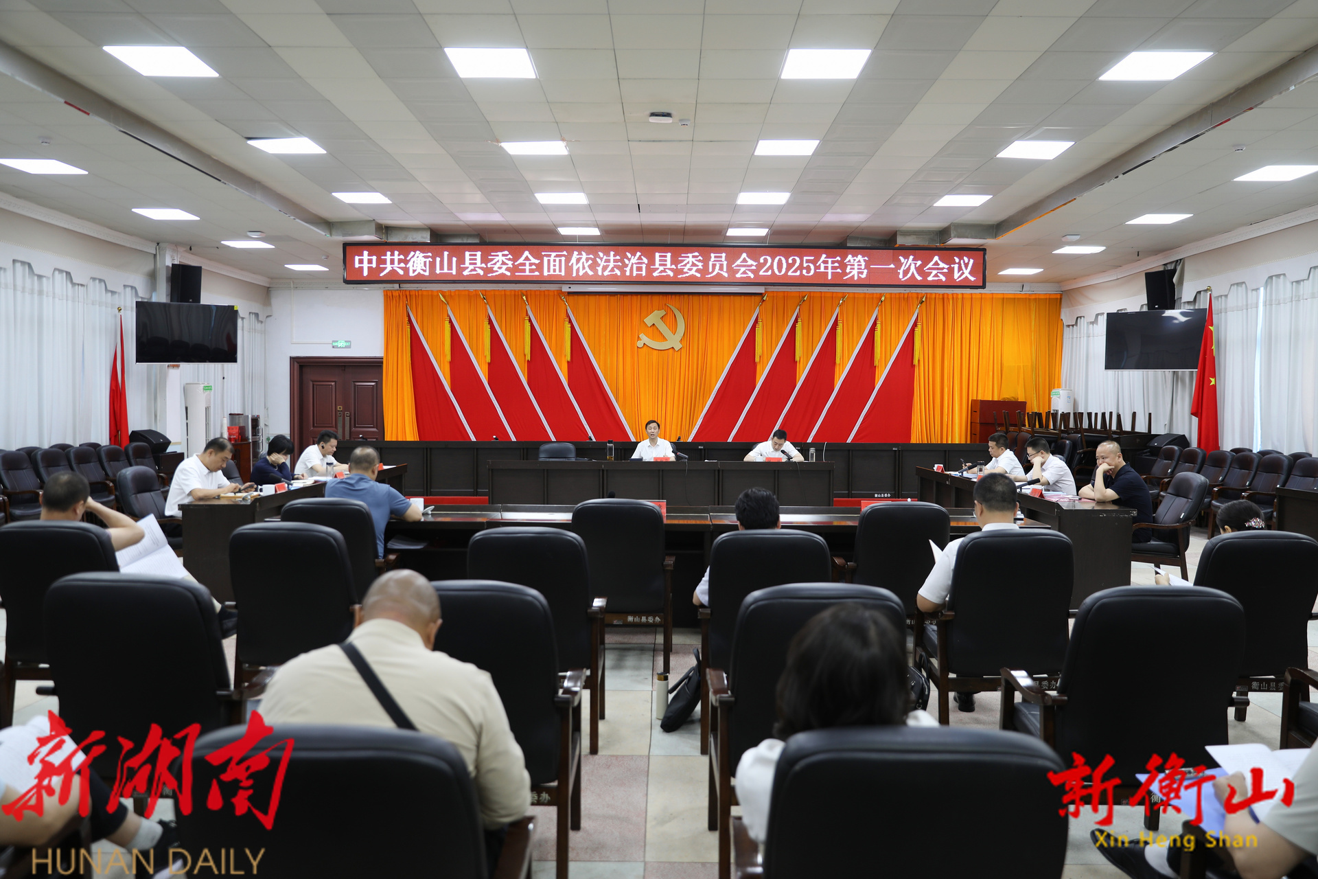 新衡山客户端5月14日讯(记者:刘永欢 周彭斌)5月14日,县委全面依法治县委员会2025年第一次会议召开。衡阳市政协副主席、衡山县委书记戴新贤参加会议,县委副书记、政法委书记谢斌主持会议。