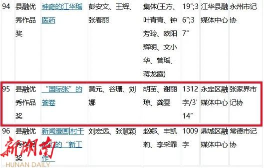 5月12日,2024年度湖南新闻奖评选结果公示,由永定区融媒体中心报送的作品《“国际张”的答卷》拟获二等奖,这是永定区融媒体中心连续五年获湖南新闻奖殊荣。