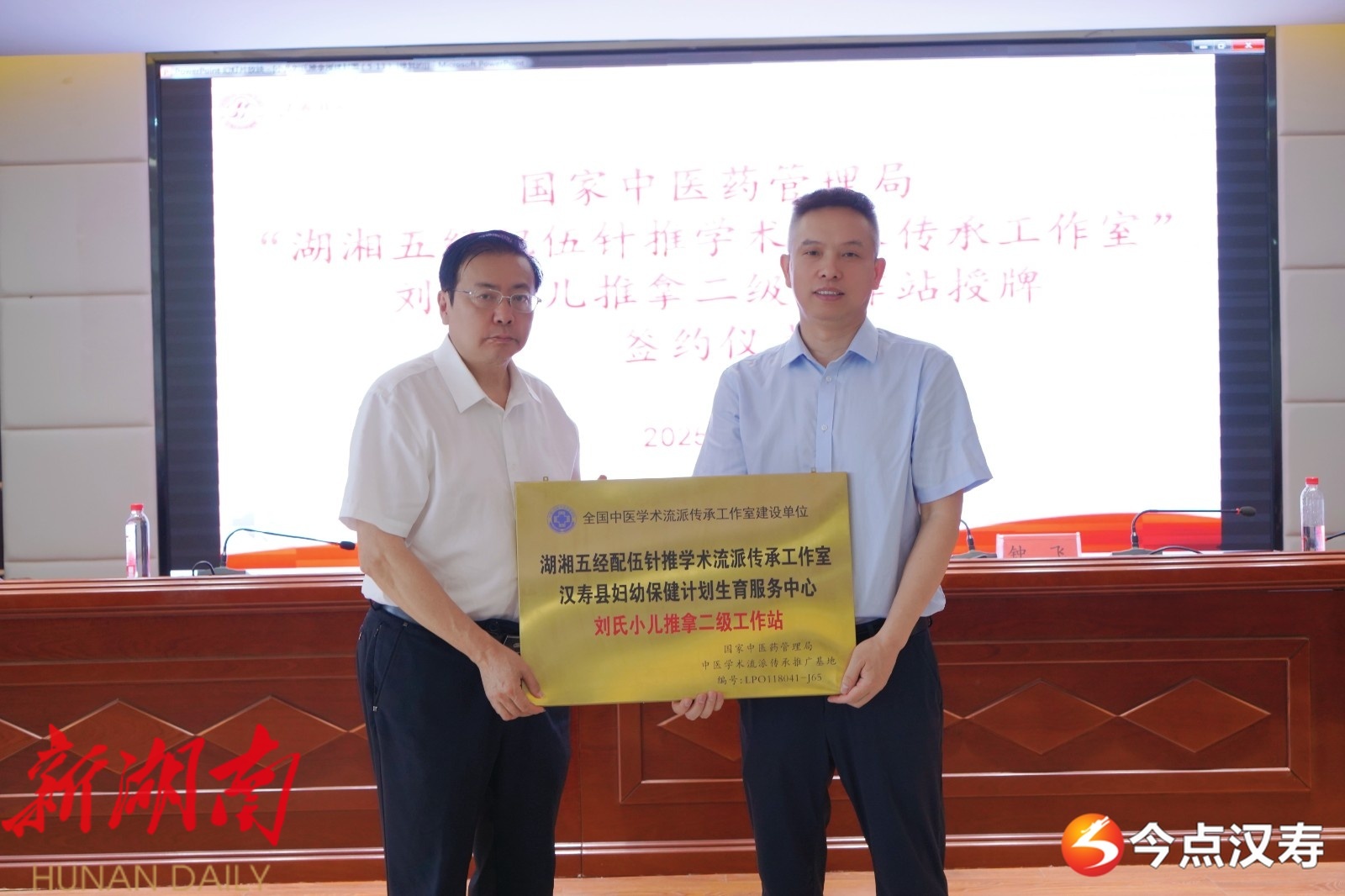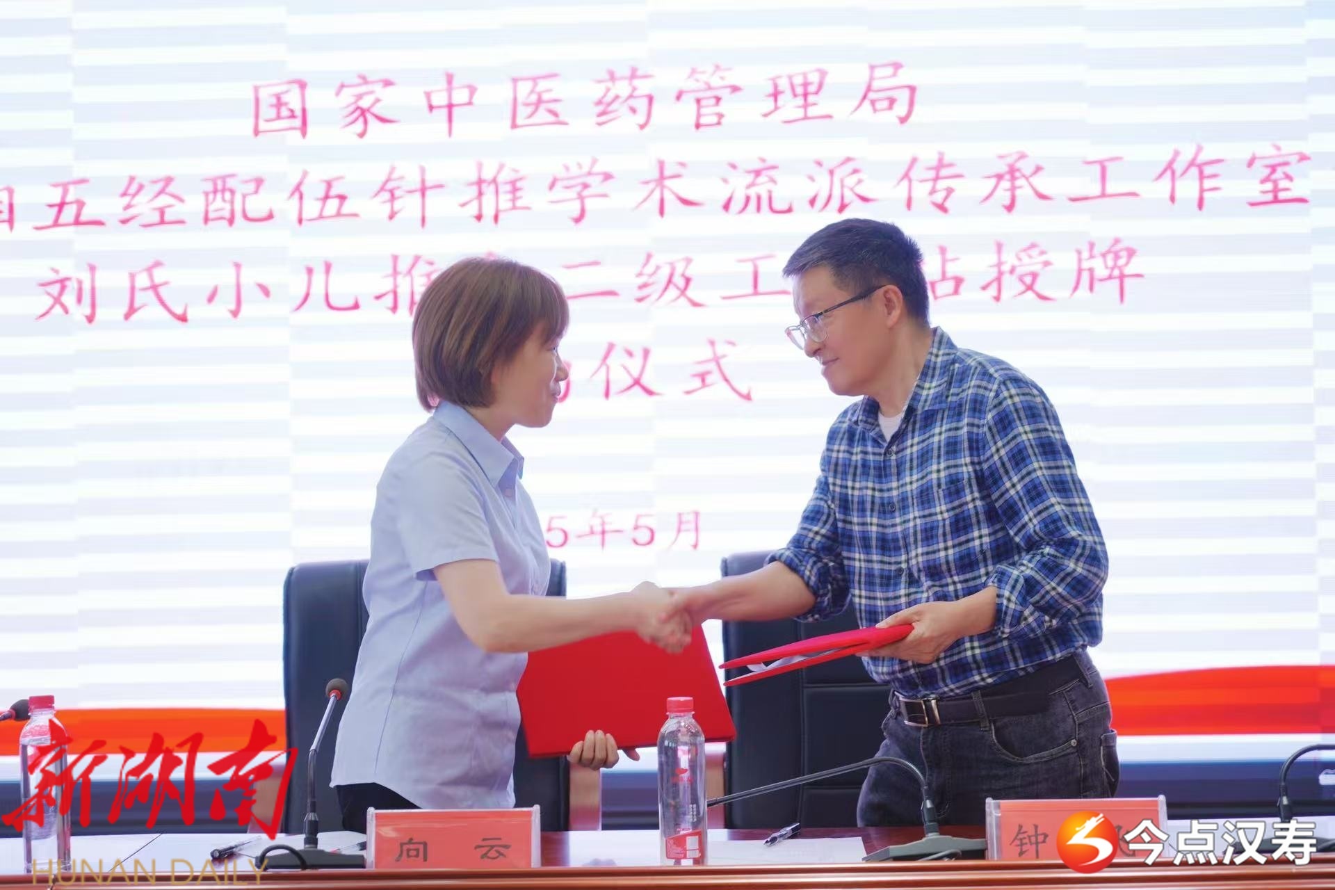 汉寿融媒5月15日讯(通讯员:刘亚琴)5月14日,国家中医药管理局“湖湘五经配伍针推学术流派传承工作室刘氏小儿推拿二级工作站”授牌签约仪式在汉寿县妇幼保健院隆重举行。