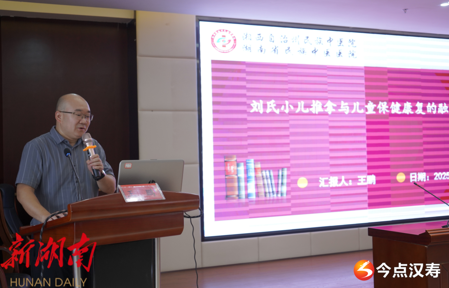 钟飞教授就刘氏小儿推拿的渊源与发展为大家作了详细的讲解。刘氏小儿推拿起源于清朝咸丰同治年间,创建于19世纪70年代,历经六代传承发展至今,是我国目前小儿推拿的主要流派之一。作为传统医药的一种诊疗方法,其理论体系相对完善,技法体系十分丰富,在儿科疾病的治疗中表现出极大的应用价值。2012年获得国家中医药管理局第一批中国中医学术流派传承工作室“湖湘五经配伍针推流派传承工作室”;2013年至2015年获批“湘西自治州非物质文化遗产”“湖南省非物质文化遗产”;2015年又获“湖南省首批中医药专长绝技项目”。